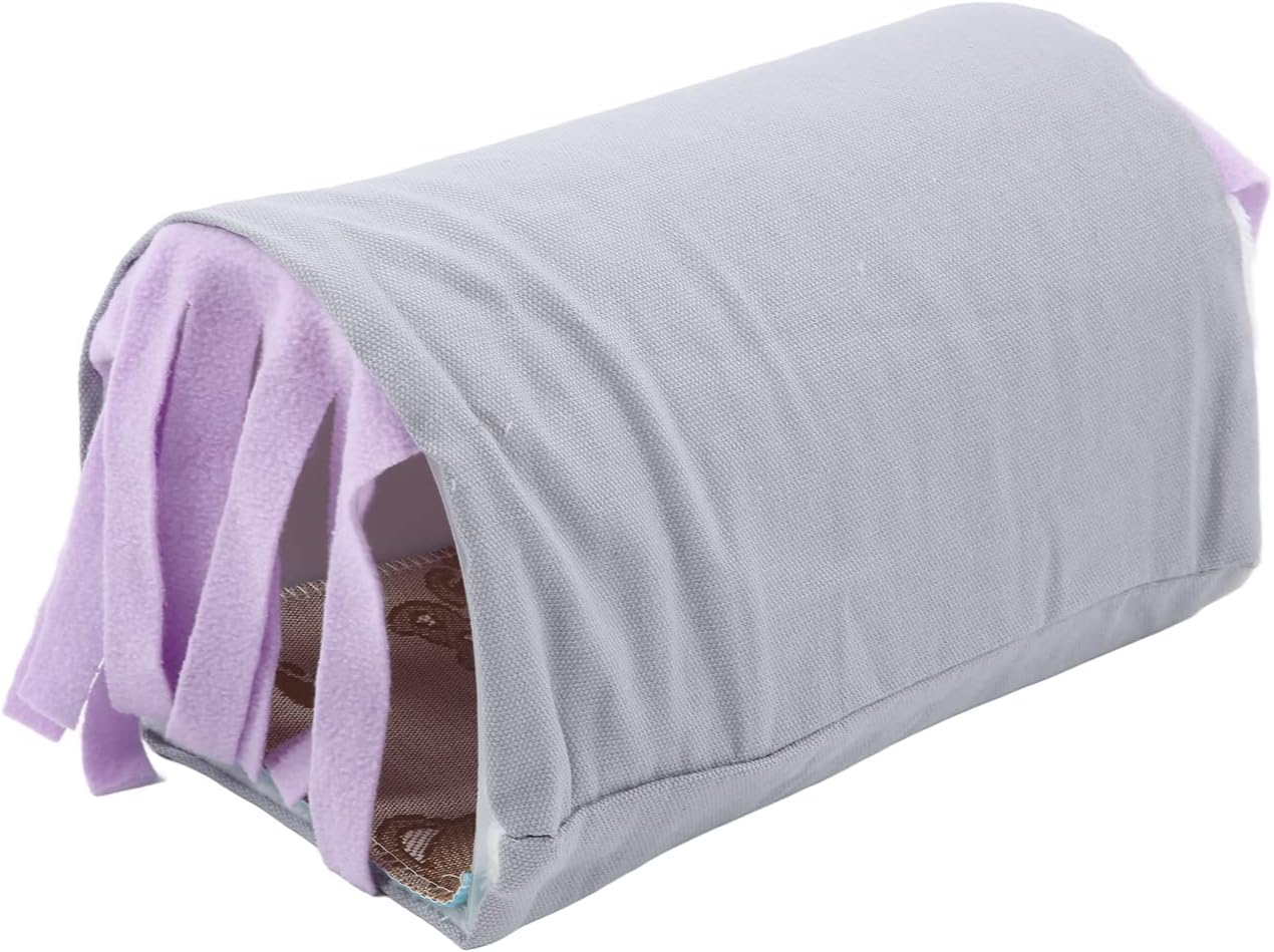 [HIGH-QUALITY MATERIAL] The pet nest is crafted from canvas, flannel, and plastic board, ensuring durability and easy maintenance.[SAFETY FIRST] The rounded corners of the detachable plastic sheet inside the tunnel nest prevent any harm to small pets.[ WINDPROOF] Colorful flannel tassels provide shading and windproof protection, increasing pet privacy and enjoyment.[COMFORTABLE SHELTER] Mimicking a tunnel, this shelter offers a cozy habitat for small animals while stimulating their instincts.[ALL-SEASON DESIGN] With a removable pad for cooling in summer and plush warmth in winter, this tunnel nest caters to pets all year round.Spec:Item Type: Pet Tunnel NestMaterial: Canvas, Flannel, PlasticSize:Tunnel Nest:Length: Approx. 30cm/11.8inHeight: Approx. 16cm/6.3inBottom Width: Approx. 16cm/6.3inWidth at the Widest Point: Approx. 18cm/7.1inPurpose: Small Pet Hamster Tassel Tunnel NestPackage List:1 x Tunnel Nest1 x Support Plate1 x MatNote:1. There are scratch films on both sides of the plastic plate, which can be torn off according to needs when using.2. Please allow 0‑2cm/0‑0.8in error for manual measurement.