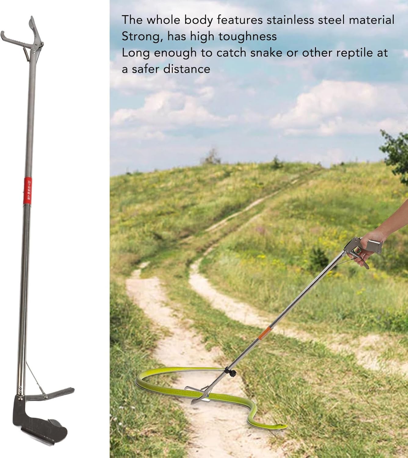 1. Stainless Steel Material: The whole body of the snake tong features premium stainless steel material, which is strong, has high toughness. 2. Long Length: The reptile grabber catcher is long enough to catch snake or other reptile at a distance, safer and more secure. 3. Foldable Design: The tong is folable, can be self locked on the handle, you can freely choose the locking degree. 4. Easy to Use: Specially designed for snake farmers, can easily and quickly catch snakes no matter the snake species, size or length. 5. Easy Carrying: Foldable and self locking design make the reptile handling tool portable, convenient for carrying out. Spec: Item Type: Snake Tong Material: Stainless Steel Type: Foldable Snake Pliers Weight: Approx.468g/16.5oz PackageList: 1 xSnake Tong