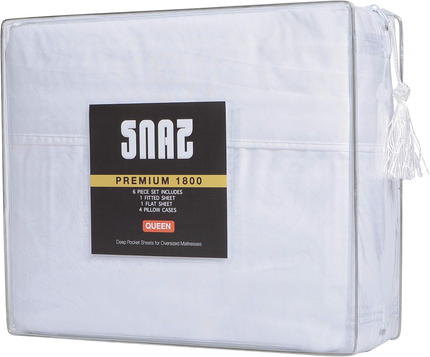 A good night’s sleep helps you function at your best--but your bed can be your biggest barrier to proper sleep. Sleeping not only gives you time to rest, it also gives your brain and every organ of the body the opportunity to rejuvenate and repair. Getting enough deep sleep provides so many benefits to your physical, mental, emotional, and overall health. However, there are many reasons that could affect sleep time. Beddings are one of them. Low quality sheets can be very uncomfortable. Any rough, itchy, or unpleasant feeling could keep you from getting your much-needed shut-eye at night. Sleep comfortably and wake up well-rested with the help of the SNAZ Premium 1800 6-Piece Bed Sheet Set! The right amount of sleep is key to a healthy lifestyle. Our set of fitted sheet, flat sheet, and pillowcases help you sleep better and wake up happier. They are made of 100% double brushed microfiber that gives you 1800 thread count feel. Each piece feels soft and cool to the touch. The sheets are designed to fit regular to oversized bed mattresses. They won’t wrinkle, pill, or thin out even with regular machine-washing, constant rubbing, and frequent use. The embossed design provides just the right elegance and style without compromising comfort and ease of care. More benefits of microfiber bed sheets and pillowcases: 🛏️Each set includes everything you need for a well-prepped bed. 1 Fitted Sheet, 1 Flat Sheet, 4 Pillow cases (Twin size has 2 Pillow cases) 🛏️Stays cool in hot weather and warm in chilly nights 🛏️Ideal gift idea for weddings, anniversaries, Christmas, and other special occasions! The SNAZ Premium 1800 6-Piece Bed Sheet Set will make you excited to sleep every night. Add it to your cart today!