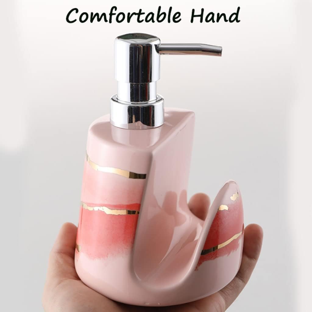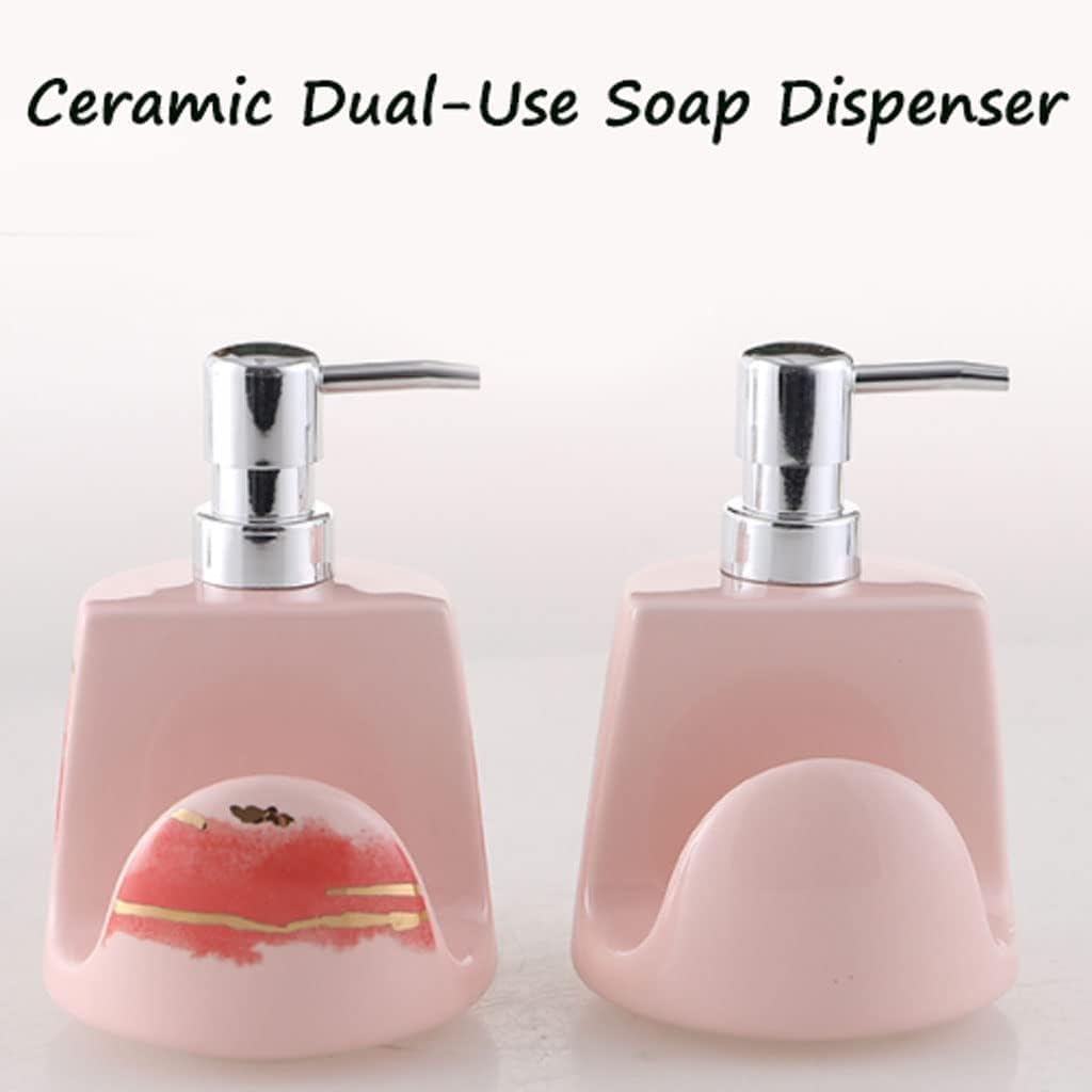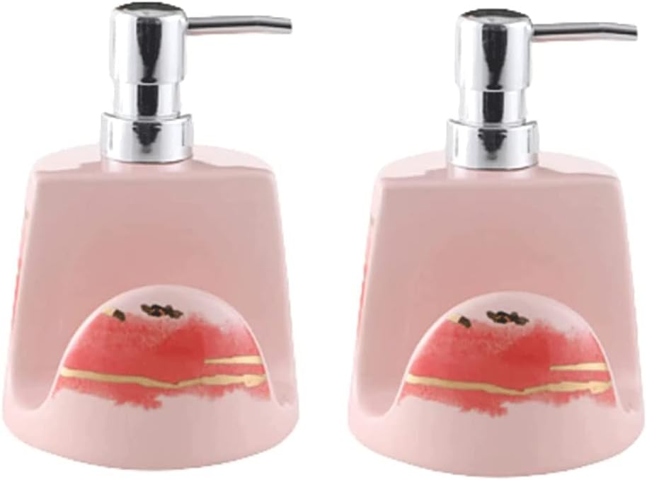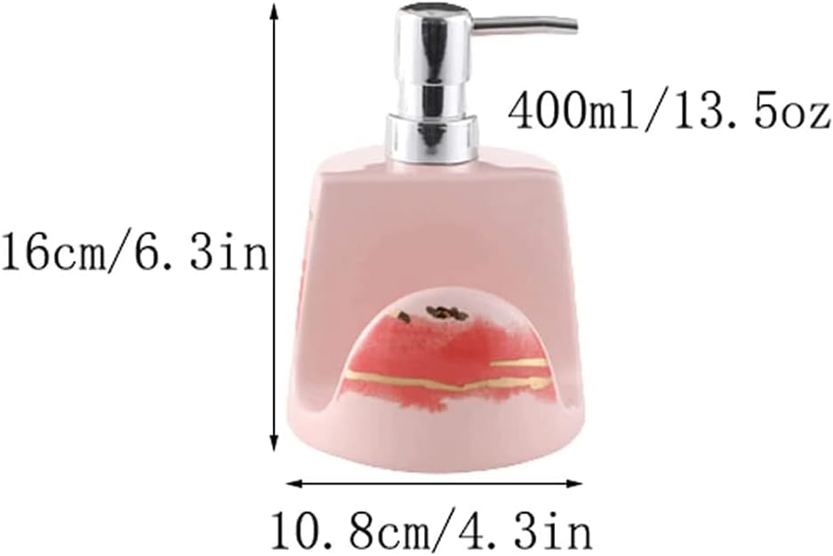 Long-lasting and Practical: The combination of solid structure ensures the durability of our hand soap dispenser. Not easy to break, fuller appearance, easy to clean and reuse; use it as a decoration to reflect your unique taste.Product name: Soap dispenserColor: pink, pinkMaterial: high grade ceramicShape: roundItem size: 10.8x10.8x16cm/ 4.3x4.3x6.3inCapacity: 400ml/ 13.5ozStyle: European styleCraft: high temperature firingApplicable scenes: bathroom countertops, vanity tops, kitchens, bathrooms, etc.Notes.1. When manually measuring the actual object, there will be 1-2 cm error, please note!2. Due to differences in shooting light and monitor, color difference may exist, please refer to the actual product.