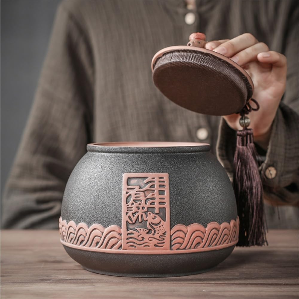Its unique appearance and charming lines add a unique artistic touch to your kitchen. Whether as a food container or kitchen decoration, it is a reliable choice.Product name: Tea storage tankProduct material: porcelain/ceramicProduct size: see product size table for detailsCraftsmanship: handmadePacking list: tea storage tank * 1Note:Please check the size and color before purchasing.Products other than the main products shown in the main picture are for demonstration purposes only and are not included.Due to lighting, display, personal color, etc., there may be color difference between the actual product and the photo. Please refer to the actual product.The above data is for reference only. The size is measured manually. There will be an error of 0-5cm. Please refer to the actual product. Thank you.