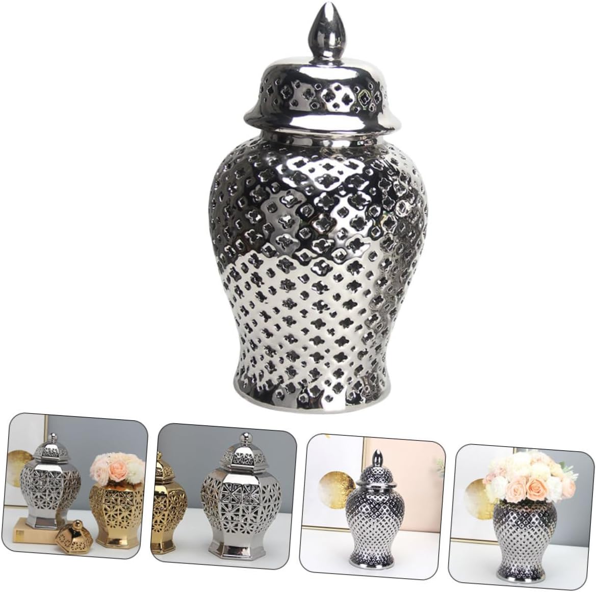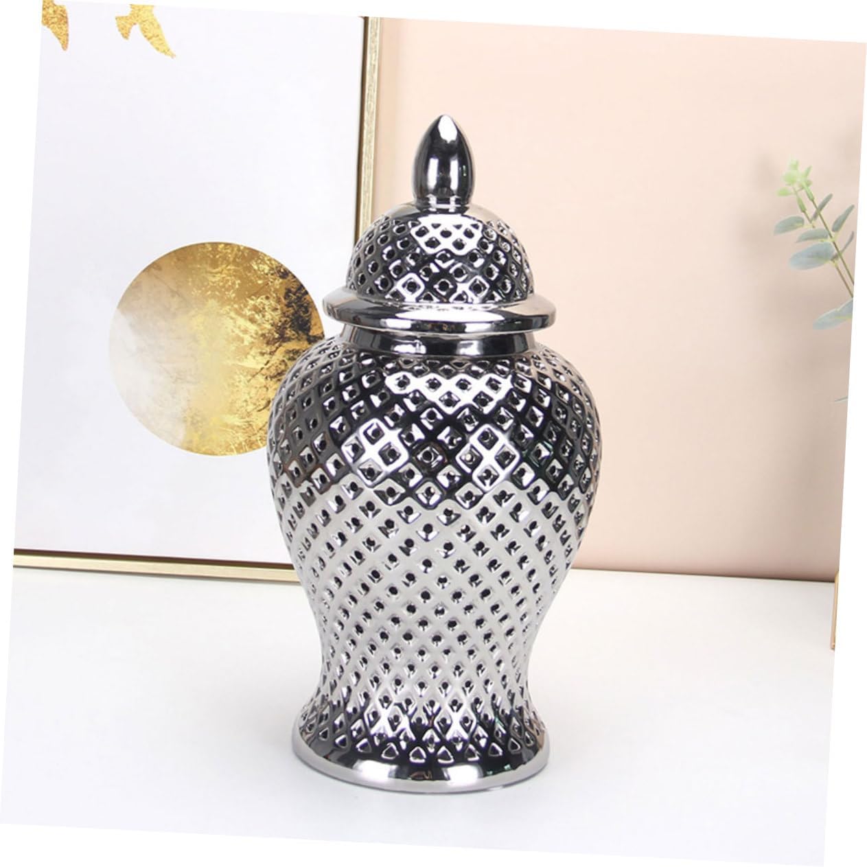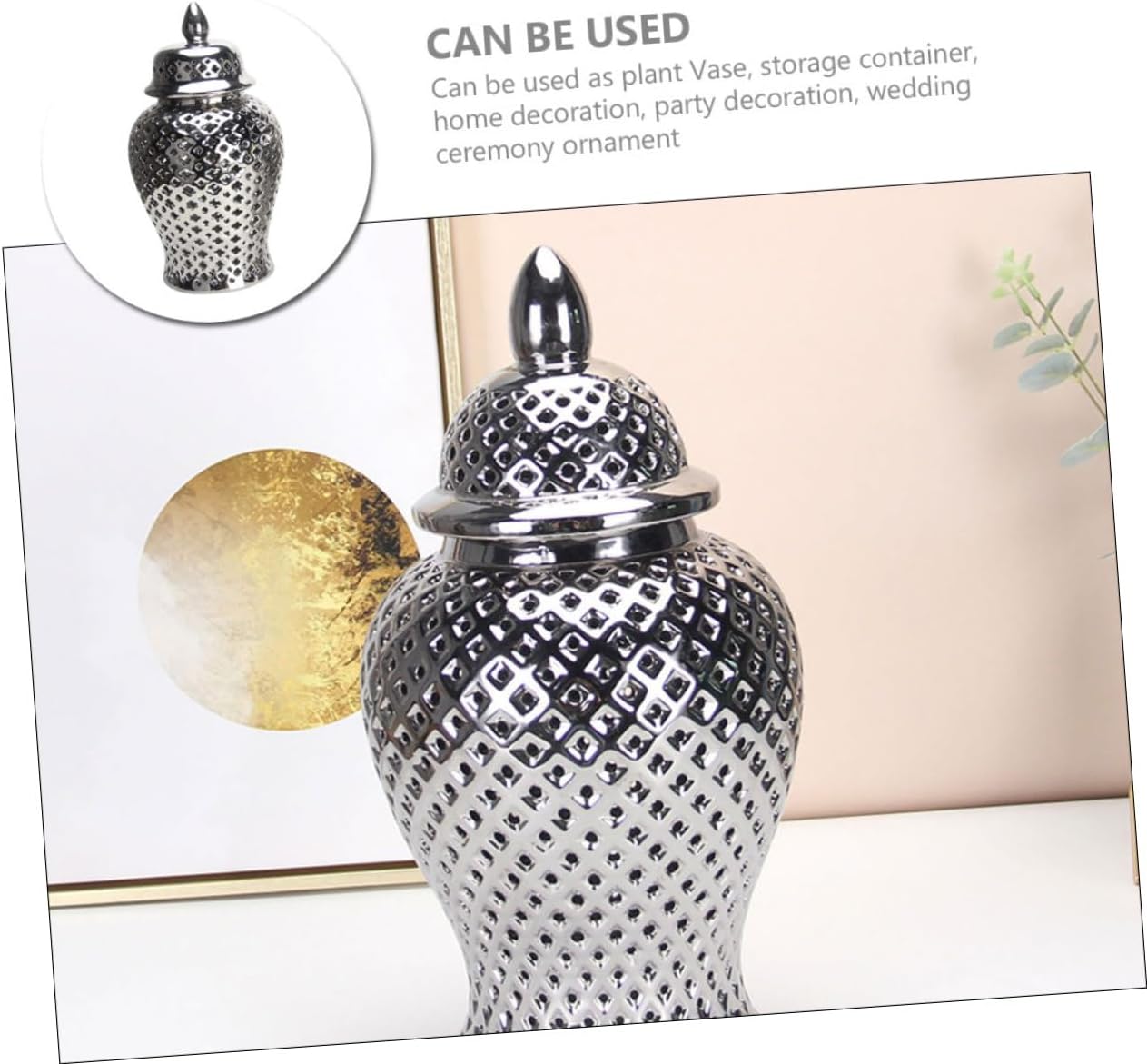 Package List 1 x Ceramic Jar Decor Features -Material:Ceramic asian vase - Color: Silver porcelain ginger jars - Size: 28.00X15.00X15.00cm/11.00X5.89X5.89in ginger jars - A perfect way to display your favorite plants and flower for household balcony decorative ceramic jars. - Simple design with great craftsmanship is attractive and fashionable, attracting other's attention chinese style vase. - Made of stable ceramic material, solid and no odor, the flower Vase is not easy to break or deform elegant storage jar with lid. - The flower Vase is a perfect for those who love plants for European style special design and workmanship flower storage vase. - Can be used as plant Vase, storage container, home decoration, party decoration, wedding ceremony ornament ceramics storage jar.Goods Descriptionjar decoration The style of the flower arrangement can go well with many plant styles, which is perfect for planting many kinds of flowers or other decorative plants, and .desktop ornament This is a hollow jar, ideally designed for decorating garden balcony, and wedding ceremonies