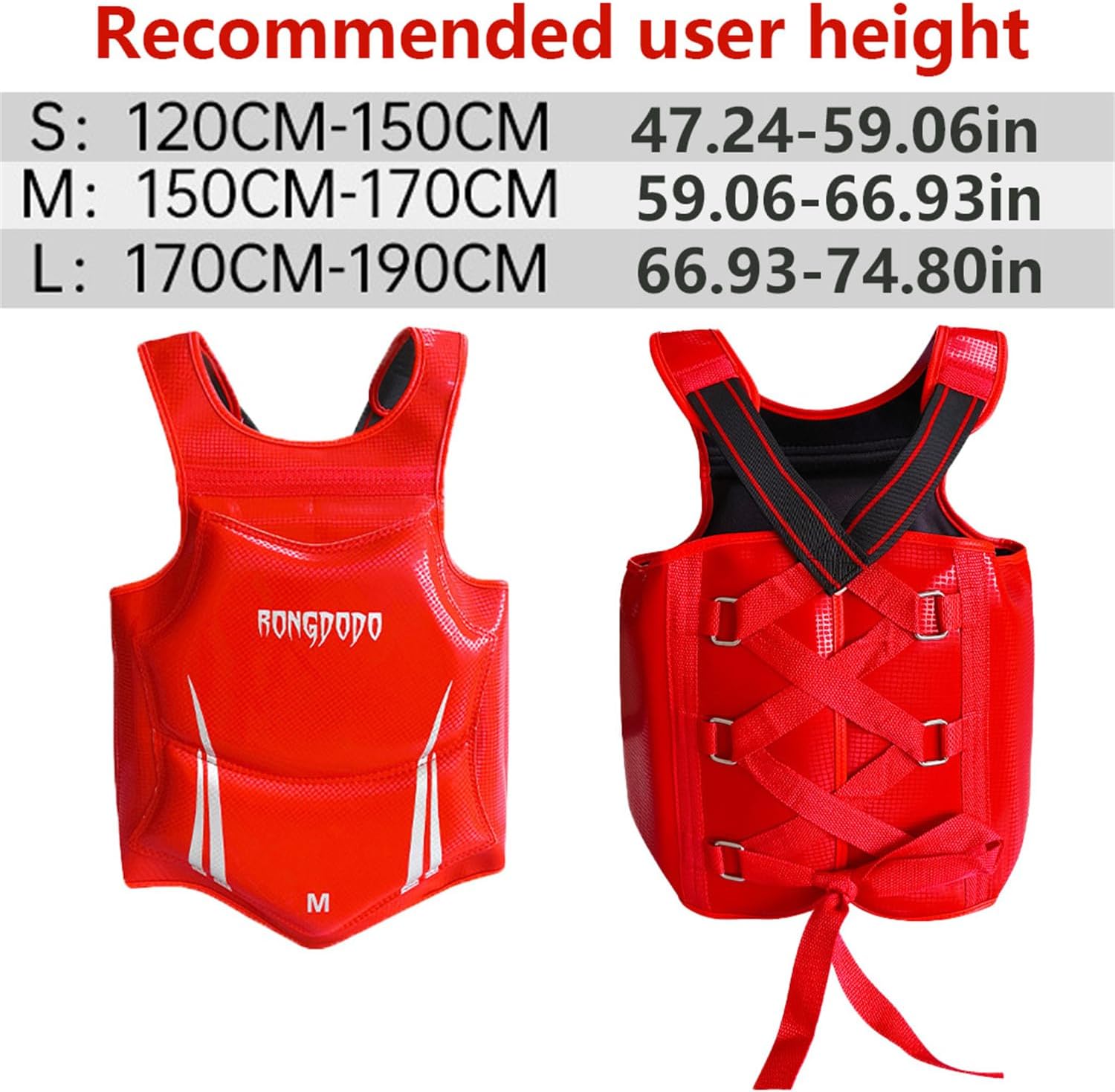 【Materials】 The chest, leg, and head protectors are all made of thickened PU leather, EVA cushioning cotton, polyester lining, and nylon bandage; The crotch protection is made of ABS high-strength engineering plastic, thickened PU leather, polyester lining, and nylon bandage. 【Velcro design, easy to wear】 The chest, leg, head, and crotch protection are designed with Velcro, which can be freely adjusted in size and elasticity, suitable for people of different body types. 【 Features 】 The upgraded 7CM thick chest protector can effectively absorb impacts, enhance shock absorption, and play a key protective role. The foot bandage prevents detachment, the semi-circular collar is comfortable to wear, the reinforced stitching is durable and sturdy, the breathable lining quickly eliminates sweat. 【 Recommended size to match height 】 S: 120CM-150CM/47.24-59.06 inM:150CM-170CM/59.06-66.93inL:170CM-190CM/66.93-74.80in 【Packaging contents】 chest protection x 1pcs, leg protection x 2pcs, head protection x 1pcs, crotch protection x 1pcs, storage bag x 1pcs.