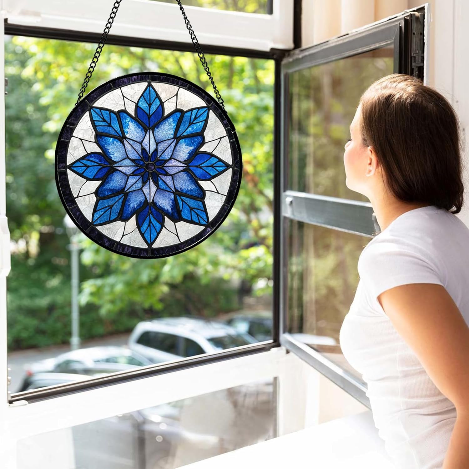 "Stained Glass Window Hanging: A Timeless Blend of Art & Elegance Elevate your home decor or surprise a loved one with this exquisite stained glass window hanging—a masterpiece that merges artistry, functionality, and heartfelt charm. Perfect for gifting on birthdays, housewarmings, anniversaries, or as a thoughtful “just because” present, it transforms any space into a haven of beauty. Hang it in a sunlit kitchen, cozy bedroom, or elegant living room—the stained glass interacts with natural light to create a warm, magical ambiance. Morning rays bring soft, pastel glows; afternoon sun deepens colors into a kaleidoscope of warmth. It’s not just decor—it’s an ever - changing light show that turns ordinary moments into memories. Gift - Ready & Versatile Packaged with care, this window hanging arrives ready to delight. The durable hanging chain ensures easy installation—no tools needed, just instant beauty. Whether your loved one adores classic decor, bohemian vibes, or unique art pieces, this gift complements every style. It’s more than a decoration; it’s a symbol of thoughtfulness, perfect for anyone who cherishes beauty in the everyday. This birthday gift, housewarming present, anniversary surprise, thoughtful gift, unique home decor gift, heirloom - worthy gift, artisanal gift, just because gift. Made with thick, high - quality stained glass and sturdy metal chains, this piece resists chips, cracks, and fading for years. Its timeless floral design ensures it never goes out of style—ideal for passing down as a cherished heirloom or enjoying as a long - term centerpiece in your home. Give the gift of art, light, and lasting beauty. Whether decorating your own space or surprising someone special, this stained glass window hanging turns windows into works of art—and moments into celebrations."