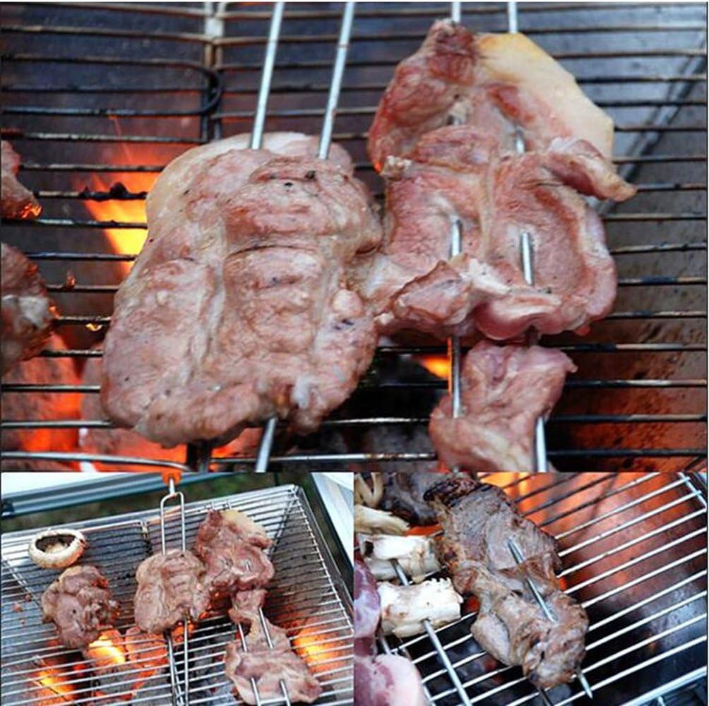Product name: 8pcs Stainless steel BBQ skewers Net weight: 500g Gross weight: 550g Product size: 34cm Product meterial: stainless + silicone Packing include: 8 x Stainless steel BBQ skewers + Oxford bag