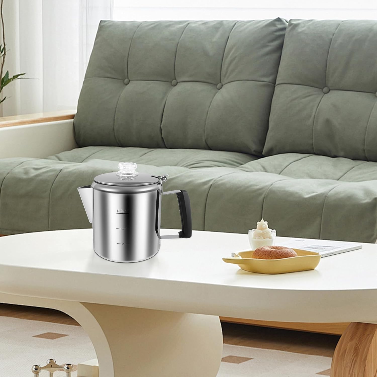 Description:—This compact coffee percolator brews up to 6 cups, features a foldable metal handle for easy storage, and is made from stainless steel to withstand drops and impacts, making it ideal for both indoor and outdoor use on stovetops and ceramic burners, perfect for travel and camping.Key Features:—Featuring a drip-free spout and a wide hinged lid, this coffee percolator is easy and safe to use; just add water and coffee grounds, place it on the heat, and enjoy a delicious cup of coffee.Specification:Texture: Stainless SteelSize: 125 x 108 x 130mmParts List:1 x Coffee PercolatorNote:1. There may be slight differences between the picture and the actual color of the commodity. We will try our best to show you the exact color.2. Please allow slight dimension differences due to manual measurement.