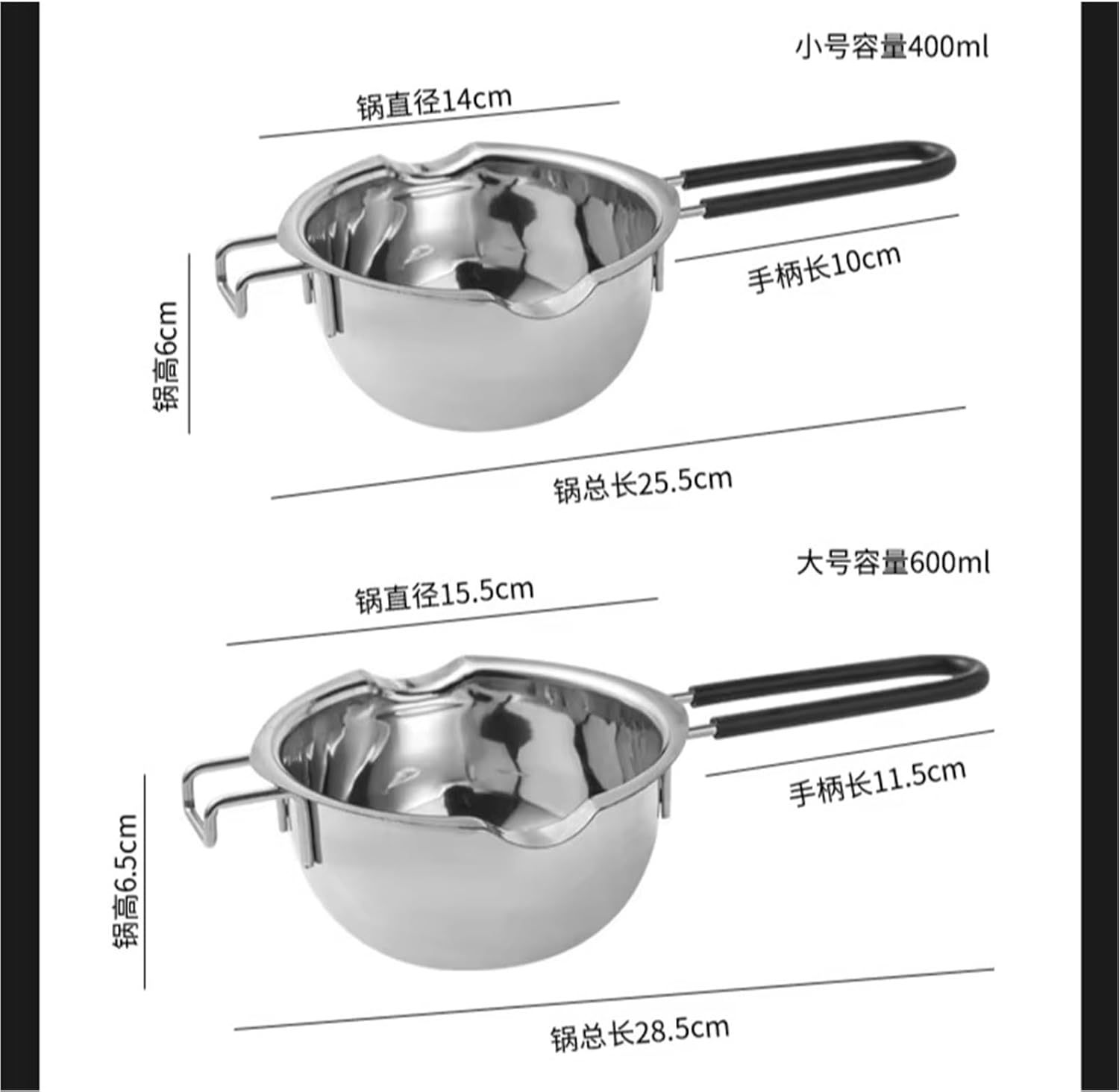 Versatile Double Boiler: Our stainless steel double boiler pot melting bowl is for a variety of tasks, including melting chocolate and making candy. This double boiler is designed for stove top use, ensuring even heat distribution for your melting needsIdeal for Chocolate Lovers: If you love baking, this chocolate melting pot is a must-have. It provides a gentle heat source to melt chocolate without burning, making it easy to create delicious treats for any occasionVersatile Cooking Tool: The stainless steel double boiler pot melting bowl is a must-have for any kitchen. Suitable for gently melting chocolate, butter, or cheese, this tool ensures even heating without the risk of burningSoap and Candle Making: This melting bowl is not just for food! It's also for soap and candle making, allowing you to melt wax and soap bases evenly, thus facilitating a smooth crafting processEasy to Clean: Crafted from stainless steel, this pot is easy to clean and maintain. Simply wash it with warm, soapy water after use, and it will look as good as clean