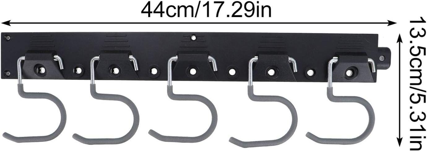 Package List 1 Set x Tool Hanger Features -Material: Plastic, metal Broom Holder. -Size: About 44.00X13.50X2.00cm/17.29X5.31X0.79in Household Tool Organizer. -Color:Assorted Color Garage Organizer - The hooks designed to hold small tools like garden shears. It will save a space for your shed, basement, workshop, closet Garage Tool Hanger. - Plus a strong PVC non-slip coating, which makes it easier to grasp objects and protect the surface of the goods from scratches Wall Mount Garage Organizer. - Suitable for organizing all kinds of tools. Such as shovels, push brooms, bags, towels, robes, umbrellas, rain boots, etc Garden Tool Organizer. - It’s recommended that you mount the organizer with enough from the ground that the tools won’t get wet even if the shed or garage floor gets wet Wall Organizer. - The hook is made of metal and plastic material, strong and durable, easy to install Tools Organizer.Goods InformationTool Hanger for Garage Wall This item is tool hanger.Garage Tool Organizer Wall mounted broom holder you get will be a whole body with hooks assembled, can install it directly with the recommended drill size according to the installation paper.Wall Mount Tool Organizer It's a choice for garage organization like garden shears