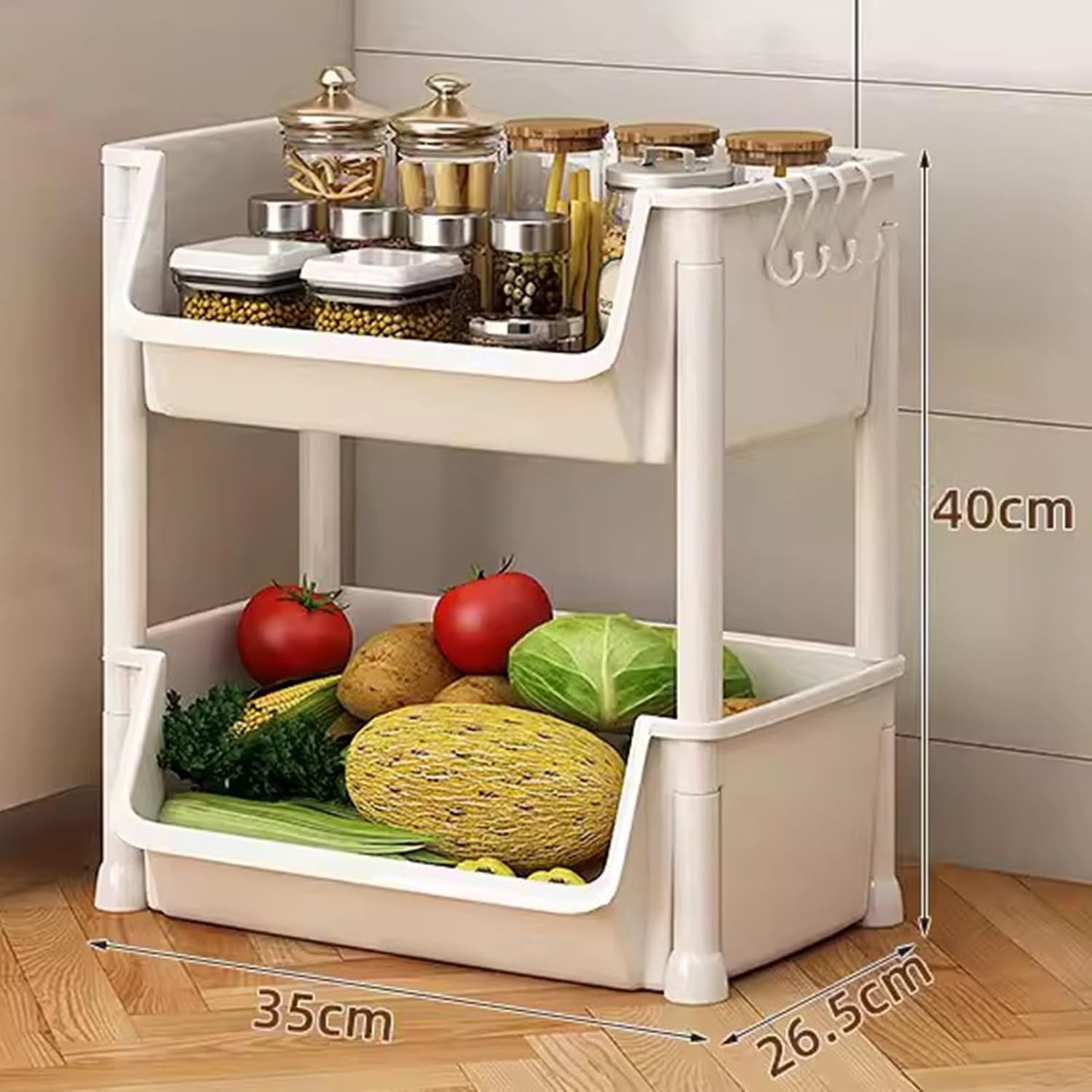 Freestanding Standing Shelves Units: Multifunctional floor-standing storage rack Material: PP Installation method: floor-standing Applicable space: bedroom, kitchen, bedroom, living room, bathroom Features: Sturdy and durable, layered and classified, easy to install, easy to move, strong carrying capacity, lockable pulleys Package Contents: 1 x storage rack 4 x hooks NOTE: We only sell storage racks. The products in the storage rack in the main picture are for display only and are not included.