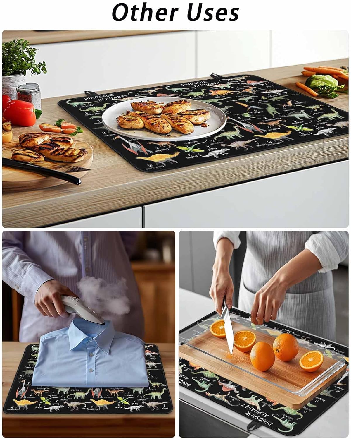 Stove Top Covers combine practicality and beauty, adding more color to your kitchen decorations.Product DescriptionMaterial: 100% Polyester cloth fabric surface with natural rubber backingSize Chart: 28.5x20.5 Inch / 24x21 Inch / 31x24 Inch / 36x21 InchExquisite WorkmanshipThe top is a layer of high-quality 100% Polyester and the bottom is rubber, which is waterproof, non slip, foldable and reusable. Will not move around when you prepare food on it.Counter Top ProtectorProtects electric, glass, or ceramic stovetop from scratches, scrapes, glass cracks, dirt & spills.Versatile UsesThe mat can be used as a stove top cover, counter top mat, ironing mat, washer top cover, coffee mat, flat top oven cover, dryer top cover, oven cover, refrigerator top cover, extra large rubber mat.Extra Counter SpaceThis stovetop cover is a one-stop solution for your many uses. It provides more worktop space for anything from food preparation to ironing. Therefore, this cooktop cover mat is perfect for kitchens with limited space.Ideal GiftThe exquisite pattern design makes the stove cover a perfect gift given to family friends and lovers. It adds color to your kitchen docor.Foldable and Easy StorageOur stove cover can be folded or rolled up and put away in your cabinet or cupboard when not in use.Special NoteNote: The mat may have creases from folding during shipping. This will smooth out in a couple of days.The colors may have slight differences due to different screens.