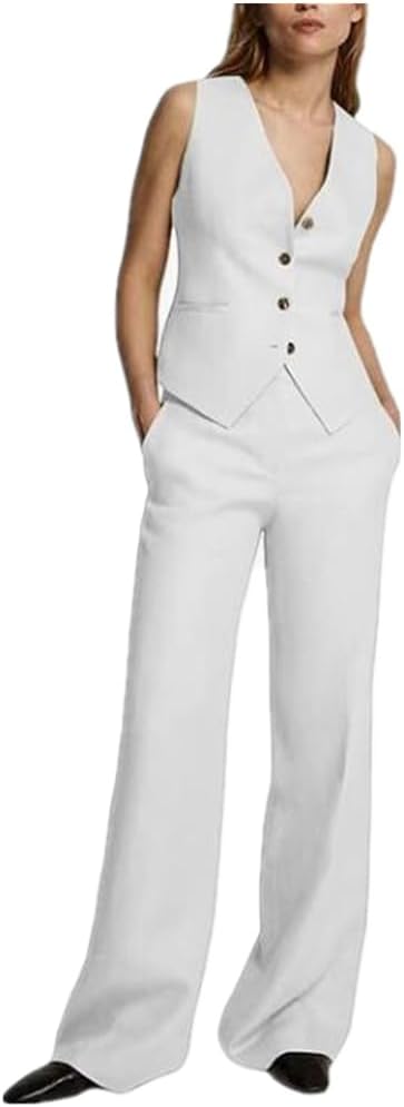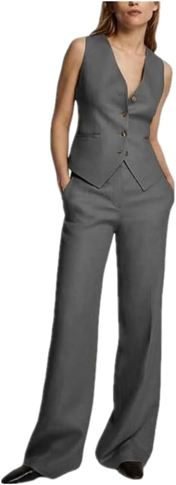 Womens linen suit,Womens linen suit,Women's 2 Piece Suiting Set,Vest and Wide Leg Pants Suit,Business Office Outfit,sleeveless vest blazer and pants set,vest suit set,Women's 2 Piece Suit Set,Sleeveless Blazer Jackets for Women/V Neck Vests for Women,Work Office Clothes for Women
