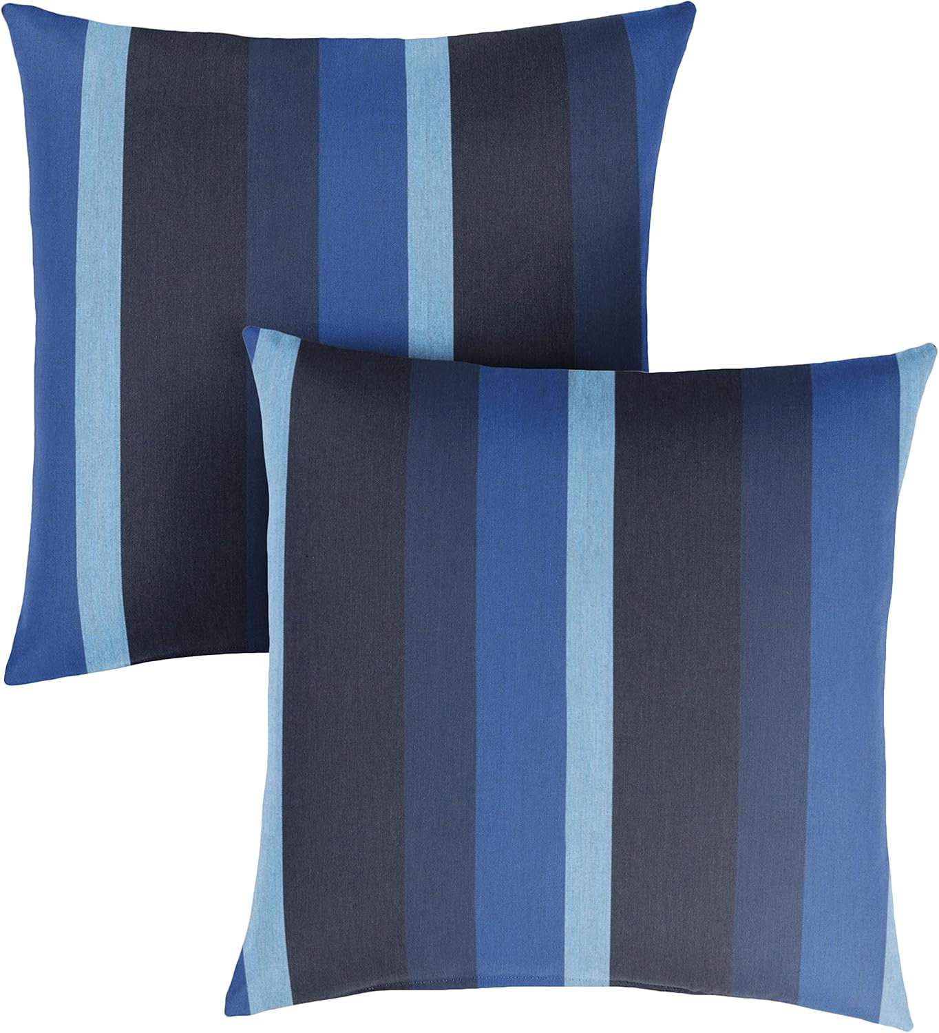 Engaging stripes add character to this set of two square outdoor pillows. Built for high-performance, each features 100 percent recycled polyester fill. The outdoor fabric delivers resistance to mildew, water, UV light and fading. Made in the USA, this pillow set is easily cleaned with a mild detergent and water solution.