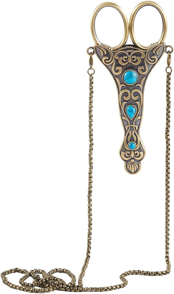 SUNNYCLUE 4 Inch 1pc European Scissors Small Sewing Scissor Chains Turquoise Embroidery Style Stainless Steel Necklace Blade Shears for Cutting Fabric Needlework Tools Craft Supplies Women Adult Brand: SUNNYCLUE Material: Stainless Steel Color: Bronze Usage: For DIY Earrings Bracelet Necklace Jewelry Accessories Feature: European Neck Scissors: These scissors are comfortable to hold, easy to use, and open and close smoothly, allowing you to cut easily and accurately, and the neck-hanging design allows for easy access to keep them out of the way during craft activities Stainless Steel Scissors: You will receive an exquisite pair of neckable European scissors that are capable of sewing, crafting, scrapbooking, embroidery, needlework, thread, artwork for your crafting needs Size and Content: The length of these hanging chain scissors is approximately 4.9cm(19.3in), the dimensions of the organizer bag charms are 8.85 x 5.65 x 1.2cm(3.49 x 2.23 x 0.47in), and the scissors measure 9.9 x 5 x 0.65cm(3.9 x 1.97 x 0.26in) Quality Material: These scissors are made of quality stainless steel material, lightweight and durable, and can be used for a longer period of time Wide Application: These scissors can be used in sewing, scrapbooking, crafting, embroidery, needlework, sailing, crafts, etc. They are a great addition to your life's entertainment