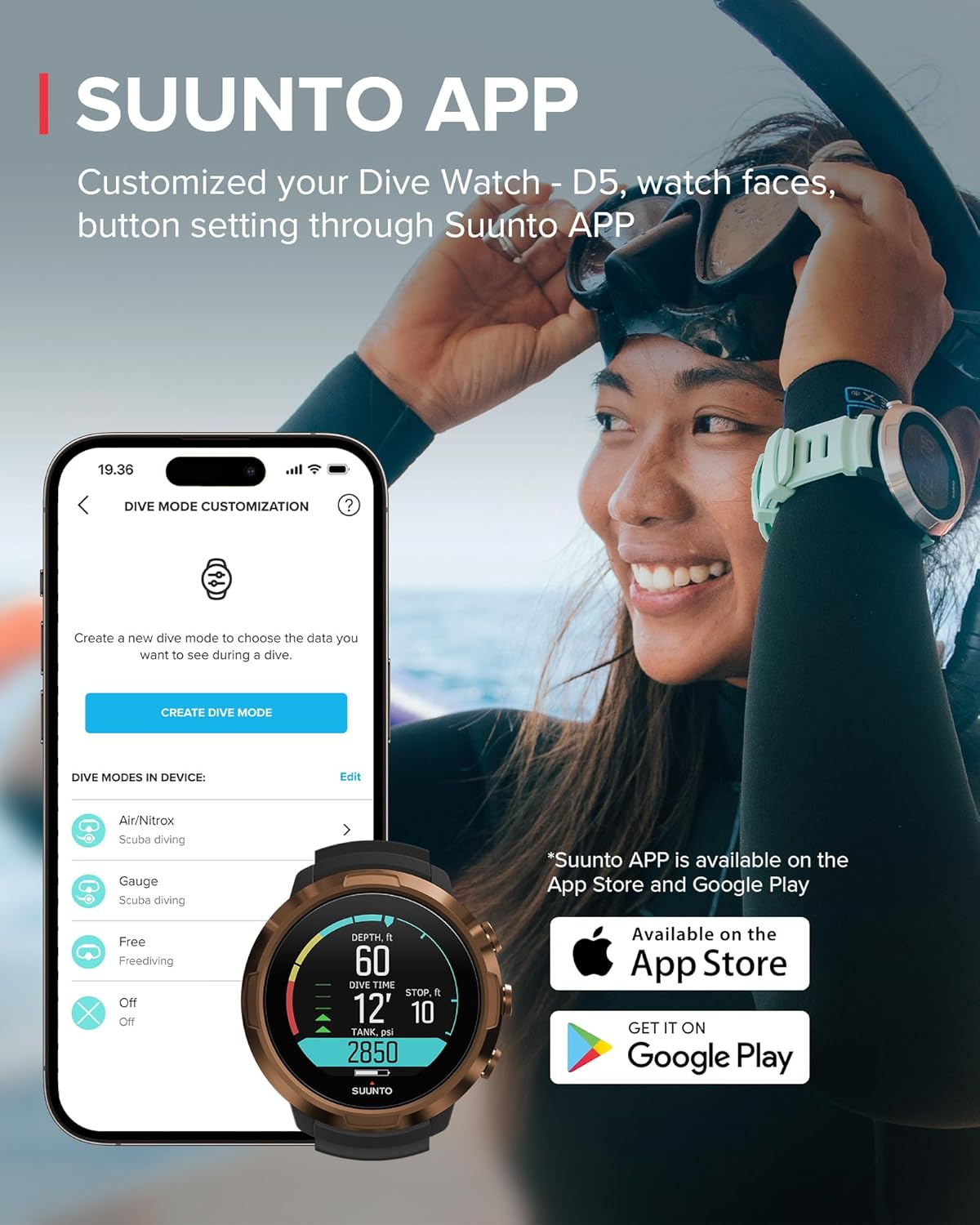 The new Suunto D5 is designed to be so clear and easy-to-use that you can just enjoy and focus on exploring the wonderful underwater world. Play with style by changing the strap to match your looks. After diving, connect wirelessly to the Suunto app to re-live and share your adventures with friends.