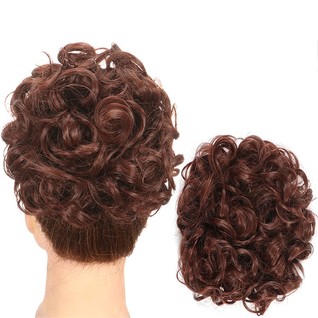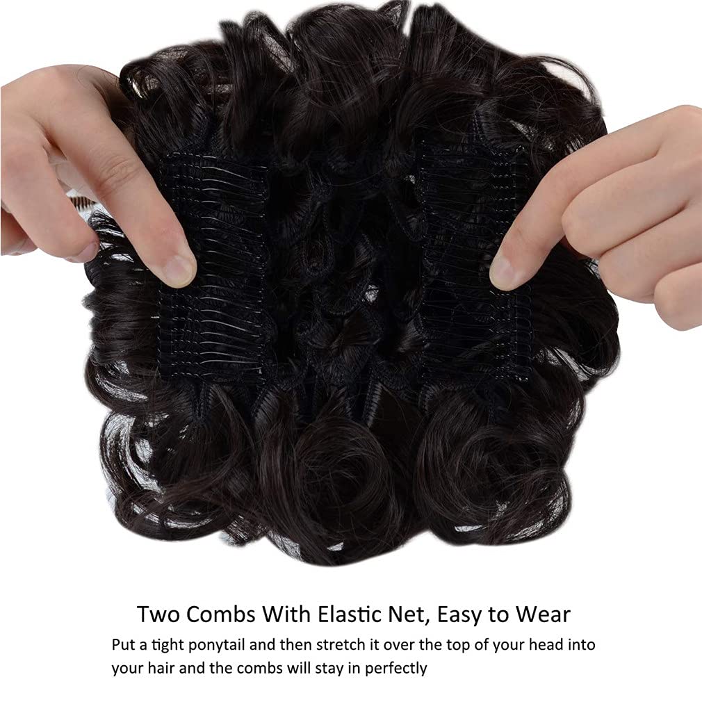 Material Grade:High Temperature FiberOrigin:CN(Origin)Chignon Type:Curly ChignonCan Be Permed:NoAttachment:Elastic BandColor Type:Piano Color