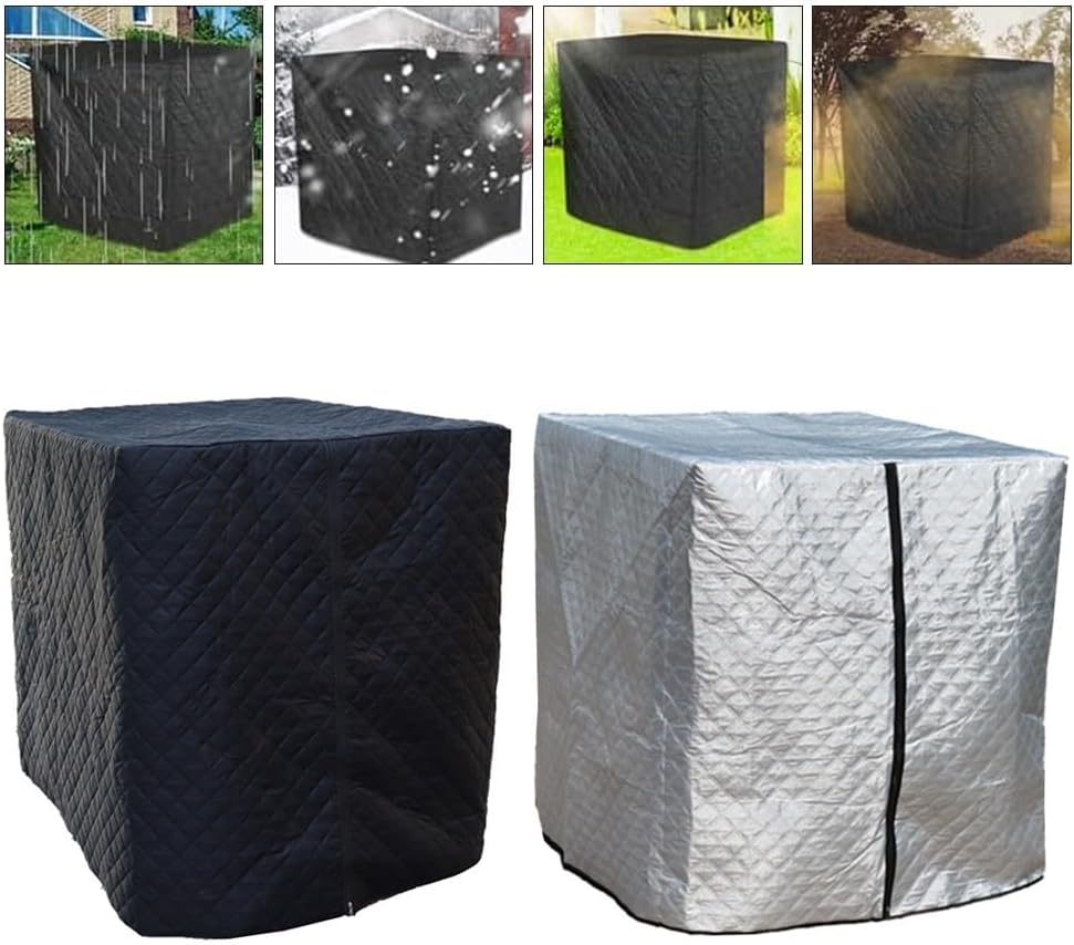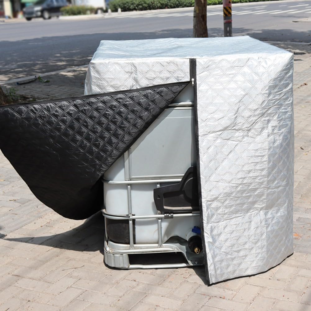 Features:*Winter for protection: This IBC protective cover is designed to withstand harsh winter conditions, effectively shielding your water tank from frost and extreme weather damage to both the tank and its contents.*Thick Insulation: Constructed with 420D Oxford fabric combined with insulation cotton and aluminum foil, this cover features sturdy seams and a thick interior lining that ensures superior thermal insulation for maximum for protection.*All-Season Versatility: Not only does this cover provide exceptional for protection against cold temperatures, but it also guards your IBC tank from harmful UV rays during spring and summer, making it suitable for year-round use.*Easy Installation: The for zip drawstring on one side of the cover allows for effortless installation and removal. When not in use, it can be conveniently folded to save space, Your IBC tank remains protected at all times.*Custom Fit: Specifically designed for 1000L IBC rainwater tanks with dimensions of 120 x 100 x 116 cm, this cover ensures a snug fit. Be sure to measure your tank before purchase to guarantee compatibility.Specifications:*Product Name:Warm Cover*Material:Oxford cloth*Size:120 * 100 * 116cm*Color:silver,Black*Number of Pieces:1pcsPackage Content:1pcs Warm Cover 120 * 100 * 116cm Black or1 piece of thermal cover 120 * 100 * 116cm silver