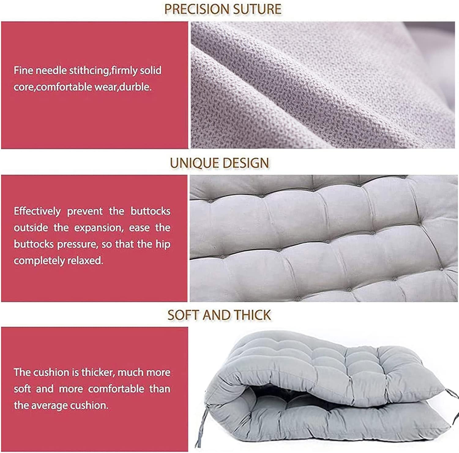 Feature: Thick cotton bench cushions is made of fiber,smooth and delicate, washable.Filled with pearl cotton is soft and comfortable. 6-8cm thickness cotton bench pad is soft and comfortable.comfortable bench cushion can relieve stress and relax the mood. This nice garden bench cushion has fixing ties.the cushion covers The connected tie securely fastens the outdoor mat to the outdoor patio furniture,simple tie on to attach and enjoy the comforting softness. Material: Pearl Cotton Color : black,purple,navy blue, brown, gray Size : 40cm,80cm,100cm,110cm,120cm,150cm,160cm. Package: 1 x bench pad How to clean: Hand wash Water cleaning below 30 degrees Celsius Non-machine washable After washing, you can pat the cushions and then place it under the sun exposure