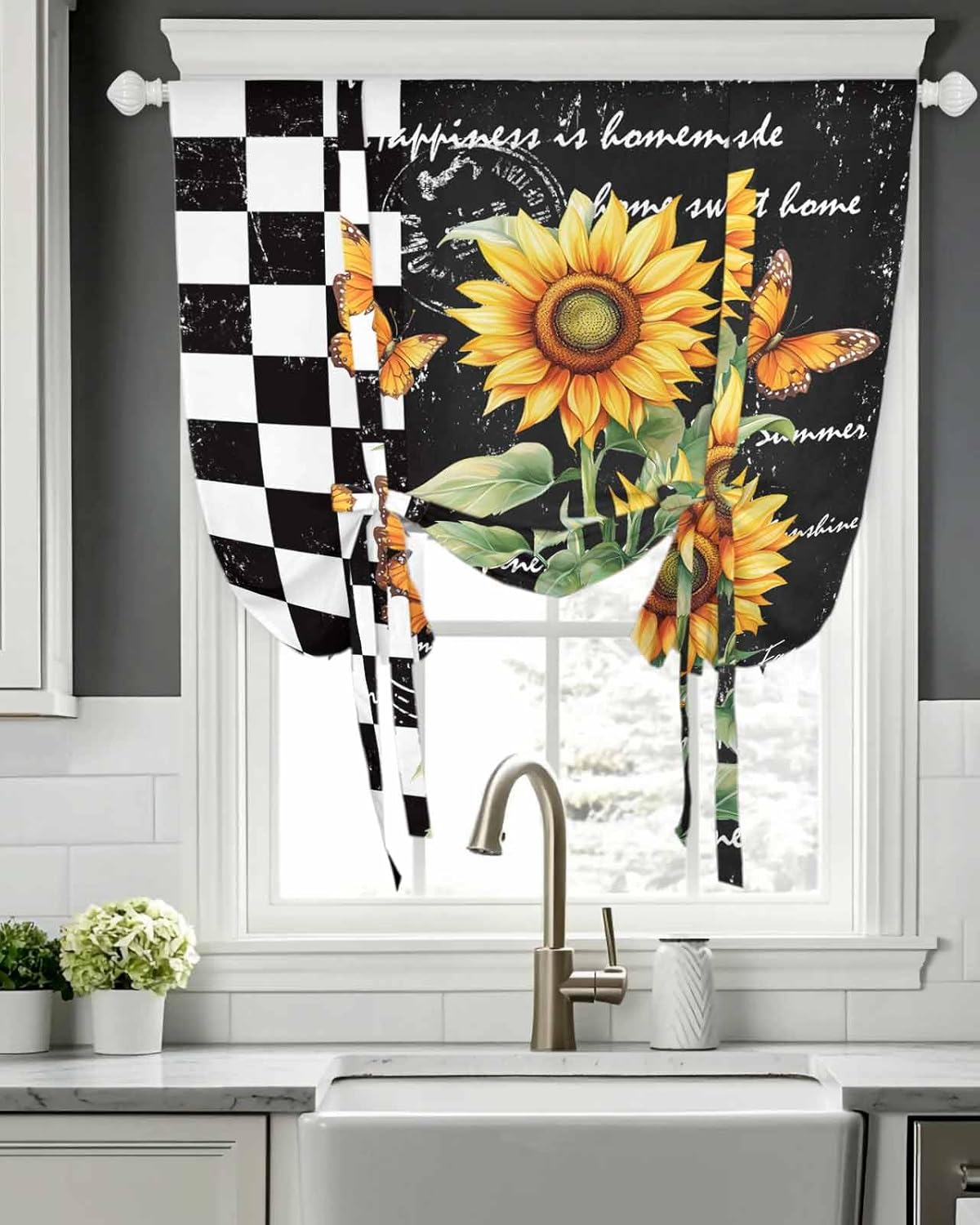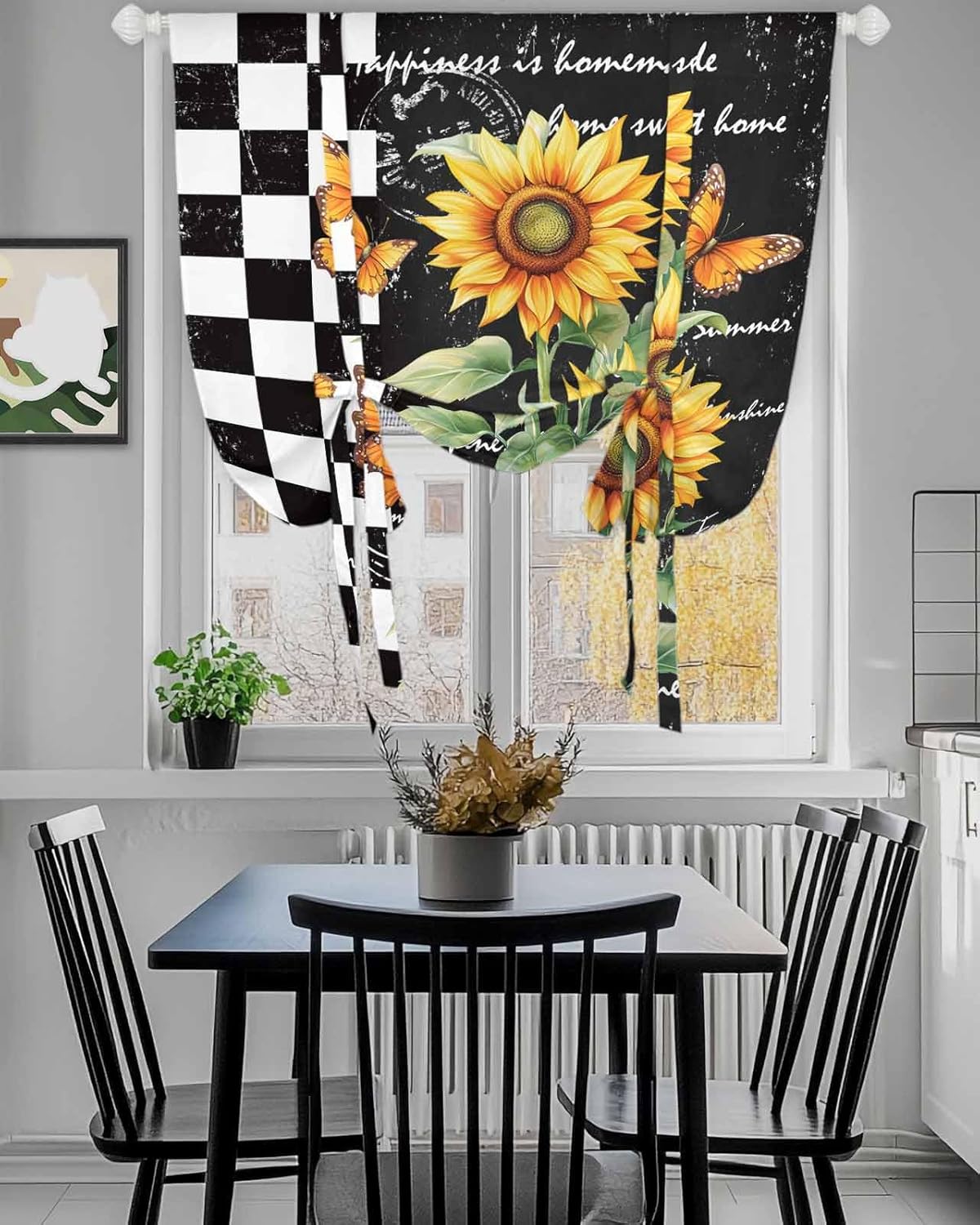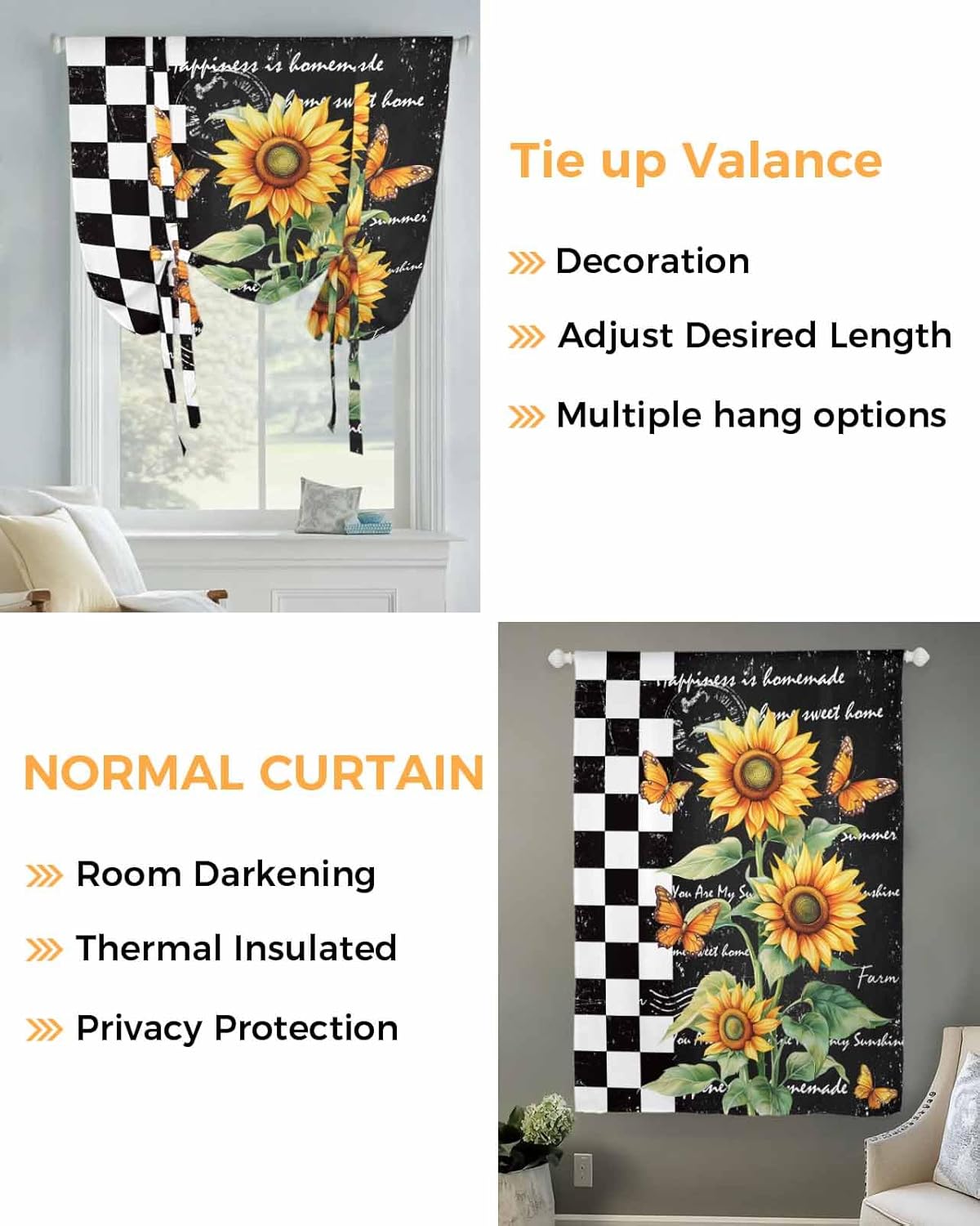 WHY CHOOSE US --Our mission is to offer premium personalized home decorative items with long-lasting material in pursuit of long-lasting happiness. --We are constantly offering a variety of window curtains in different designs, such as long window panels, short kitchen valance, swag curtain valance and tier set, window treatments, which can meet any matching decorating needs. With seasonal styles and a unique point of view on the latest trends, we will help you find designs that you want and ensure that you will live life in style.--Make a statement with your home decor by selecting roll up curtains for windows that reflect your personal style and aesthetic preferences, adding a finishing touch to your interior design.FUNCTIONS--Our window valance balloon roman shade blind not only adds a touch of elegance to your home decor but also let you enjoying the benefits of light control and privacy protection. It can the entry of heat and create good air circulation in the room. When you need a private room space, room darkening light filtering curtains can prevent outsider persons from seeing the room, protect your privacy. --Experience the perfect combination of style, functionality, and privacy protection with our 3 hanging ways tie-up window shade curtain valance, tie up curtain, rod pocket normal curtain. Tie up design makes it easier for you to adjust the height as you want for shading or decoration. A must-have rod pocket panel for every home. IDEAL CURTAINS IN ONW GO--Our cortinas para habitacion not only serve as a stylish accessory that enhances the overall decor of room, but also your ideal gift choice for your families/friends on Christmas, New Year, Valentine's Day, Birthday, Housewarming, St.Patrick's Day, Easter, father's Day, Mother's Day.