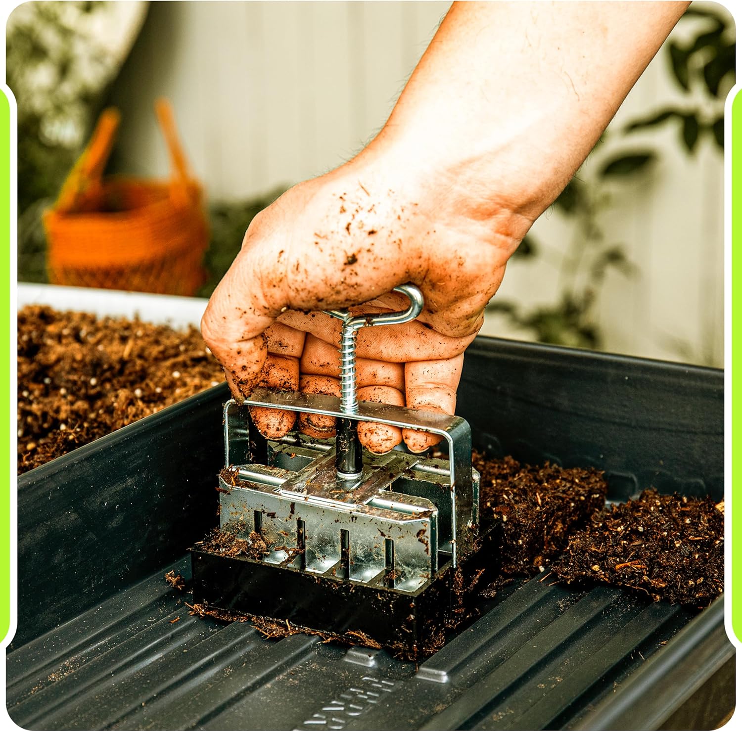 Upgrade Your Seedling Style and Make Plenty of Soil Blocks within No Time for Your Indoor or Outdoor Plants! TILLERMAN is pleased to introduce this elegant and practical soil block maker in large and small size with 3 types of pins and space saving design to make plenty of small and large soil blocks for your seeds. The soil blocks support healthy plant growth, easy transplanting and reduce plastic waste to encourage stronger and more resilient root systems. What’s Included: 2x Soil Blockers (Small and Large) 4x Small Tips for Herbs and Small Seeds 4x Medium Tips for Vegetables 4x Large Tips for Large Seedlings and Transplanting Benefits of Choosing Us: Thickened Zinc Coating Stainless Steel Heavy Duty Tips Included Ergonomic Handle Smooth Design No Sharp Edges Easy to Operate No Soil Pollution Effortless Cleaning Wide Application Large Soil Blocker Creates 2 x 2 x 2 Inch Cubes Small Soil Blocker Creates .75 x .75 x .75 Inch Cubes BUY TILLERMAN versatile and practical soil block maker TODAY and upgrade your seedling style with elegance and class. A perfect gift for your friends and family members who love gardening and seedling.