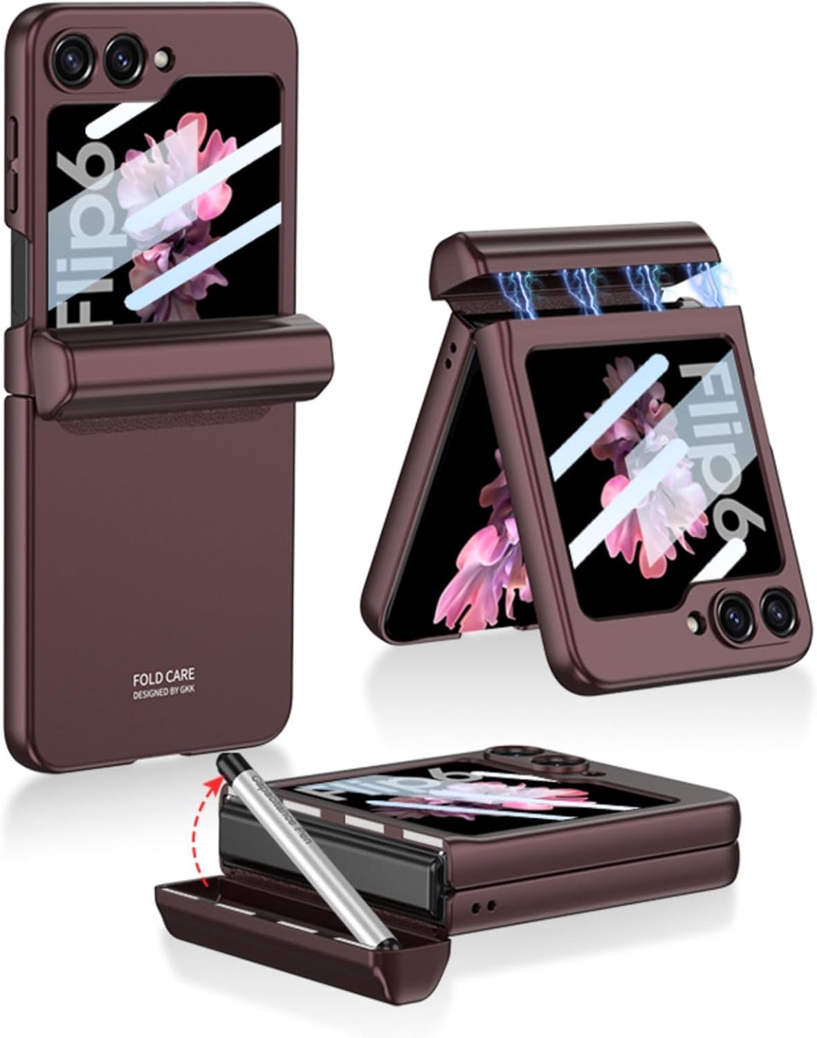 1.Hinged folding all-inclusive shell designed for Samsung Galaxy Z Flip 6 5G. 2.Galaxy Z Flip 6 5G case unfolding design,all-inclusive hinge,180°folding automatic recovery magnetic device. 3.Fast installation, perfect integration of ports such as mobile phone buttons. Instant adsorption,Six magnetic positioning,tightly fitting,full sense of science and technology. 4.Camera & Screen Protection:Raised edges of camera and screen openings,Protect the phone,camera and screen from wear and tear,Anti-fall upgrade, hinge all-inclusive,Real all-inclusive, anti-fall relying on strength. 5.The Samsung Galaxy Z Flip 6 5G shell is made of high-quality leather and PC materials. Standard magnetic bracket,Self-contained mobile phone external screen tempered glass protective film.Package content: Except phone, 1x phone case,1xTouch stylus. 6.After Sales Service:If you have any questions or you are not satisfied with our products, please feel free to contact us by email, we will reply within 24 hours. We will try our best to solve your problem.