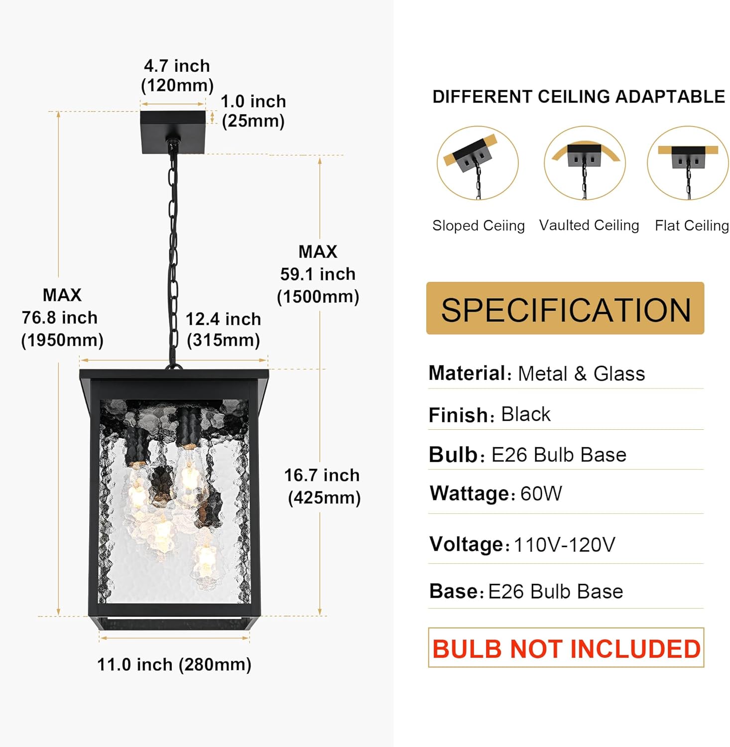 | Color | Hammered Glass, Black |