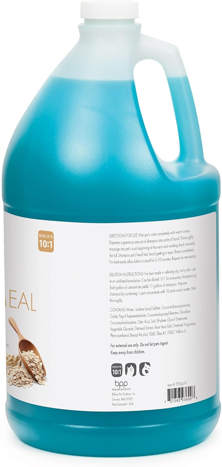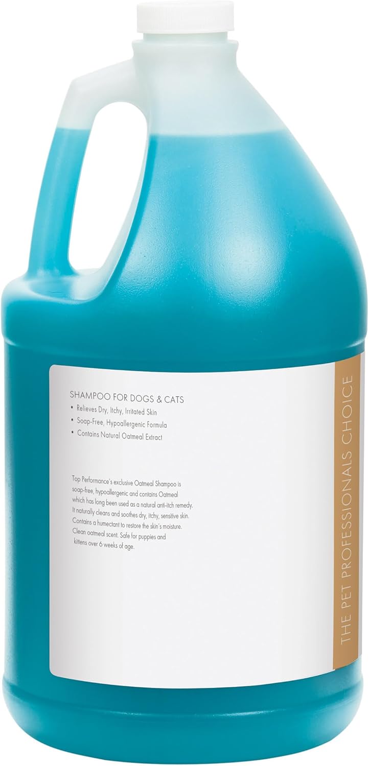 Top Performance Oatmeal Shampoo features natural colloidal oatmeal — a centuries-old remedy for dry, itchy skin.• Soap-free formula is tearless and ready-to-use • Natural oatmeal scent • Soothes dry, itchy skin and restores moisture • Can be diluted 7:1 for everyday useSafe for puppies and kittens over 6 weeks old. Use full strength for best anti-itch results. Ingredients: 2% colloidal oatmeal, purified water, Fatty Acids of Coconut Oil, Coco Amide, Coco Betaine, and Aloe Vera in a mild shampoo base