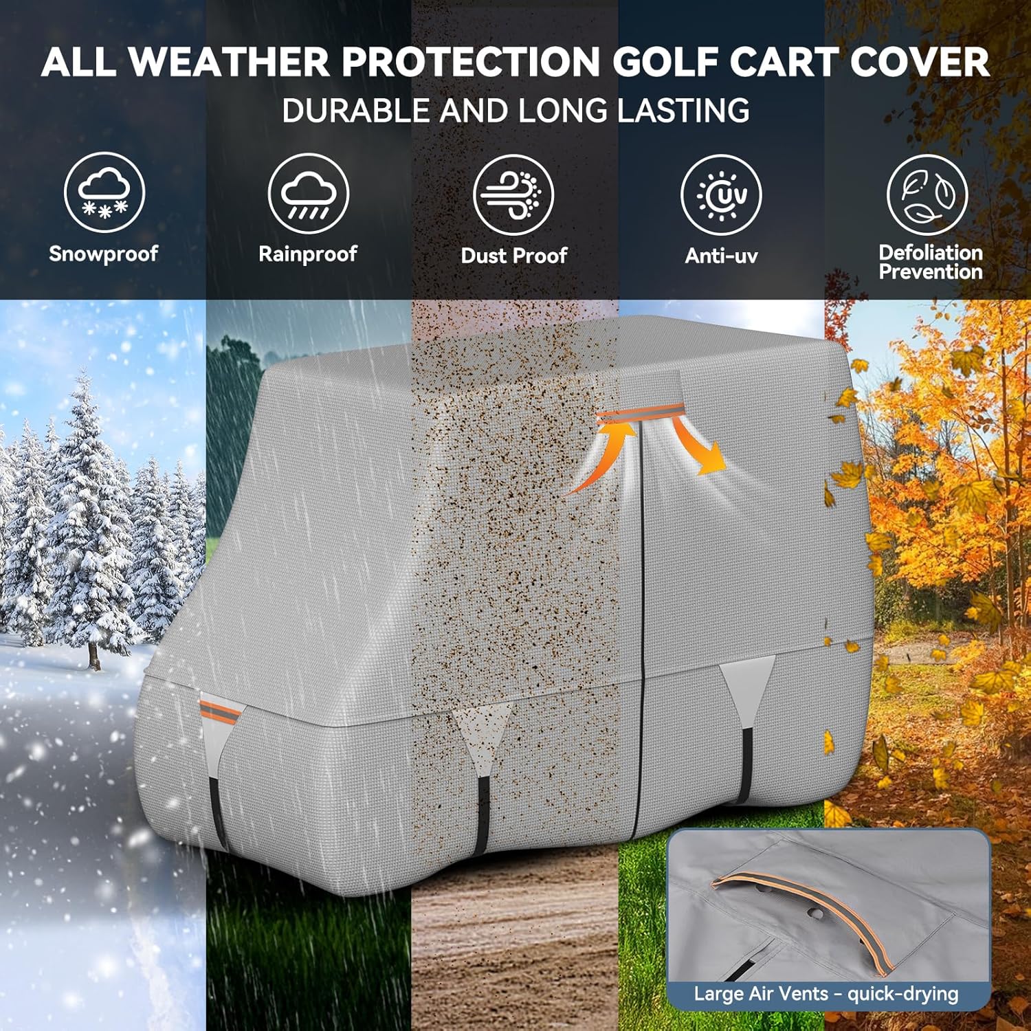 100% Waterproof 1200D Solution-Dyed Golf Cart Cover Universal Fit for Most Brand 2/2+2/4/4+2/6 Passenger Yamaha,Honda,Club Car,EZGO Golf Cart with Zipper Door,Storage Bag