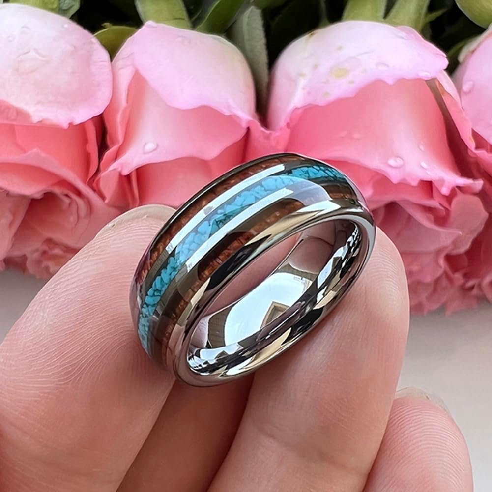 8mm Silver, Black and Gunmetal Tungsten Carbide Rings for Men Women Engagement Wedding Bands Fashion Jewelry Crushed Turquoise Koa Wood Inlay Domed Polished Shiny Comfort Fit.Our Brand Name "TUTISS" is the Abbreviation of TU=Tungsten Carbide, TI=Titanium, SS=Stainless Steel. We Devote Ourselves to Provide the High Quality Tungsten Carbide, Titaniumand Stainless Steel Rings for our Clients. We Guarantee Each Ring Purchased from Our Store Stands for the Exquisite Quality in the Market. Our Main Mission is to Help Our ClientsSaving the Money and Getting Better Quality merchandise.Our Tungsten, Titanium and Stainless Steel Wedding Bands are the Ideal Substitute of traditional Precious Metal jewelry As They Look Trendy, More Comfortable to Wear and Affordable,Also Our Fashion Rings are Excellent Gifts Suit for Wedding, Engagement, Anniversary, Party, Birthday, Valentine's, Thanksgiving and Christmas Day for Both Men and Women.Especially Our Tungsten Wedding Bands Are the New Trends In Jewelry, Not Only Because They Are Known As One Of the Strong Metals in the Earth, But Also They Remain theSame Luster after Years Wearing. If You Are Looking for a Ring that is Scratch Resistant and Always Stay its Shiny, Our Tungsten Rings Will Be Your Good Choice.If You Can Get Better Quality Products and at the Same Time Save Much More Money, Why Do Not Consider TUTISS?