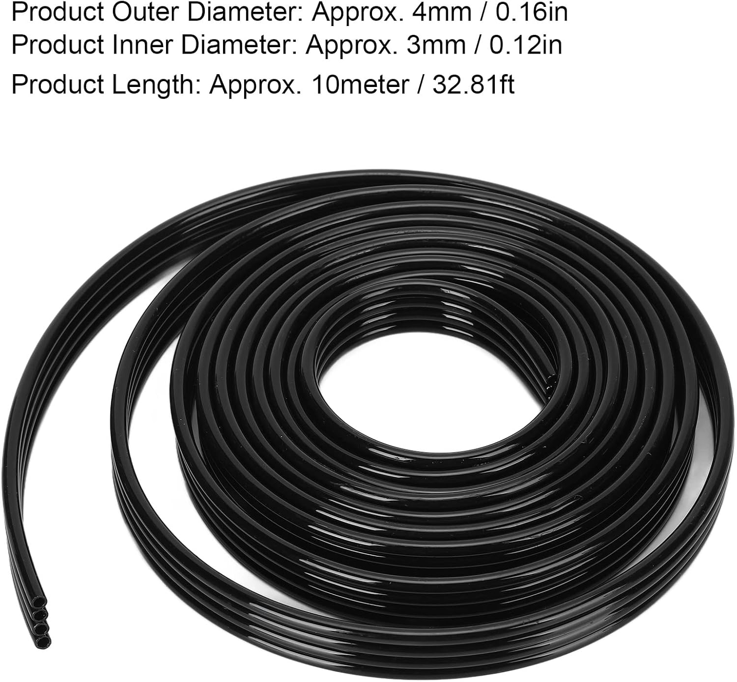 Specification:Item Type: Ink TubeMaterial: PPFunction: Ink TubeColour: BlackProduct Outer Diameter: Approx. 4mm / 0.16inProduct Inner Diameter: Approx. 3mm / 0.12inProduct Usage Scenarios: Can be used for solvent ink, water based ink, dye ink, pigment ink. Package List:1 x Ink Tube