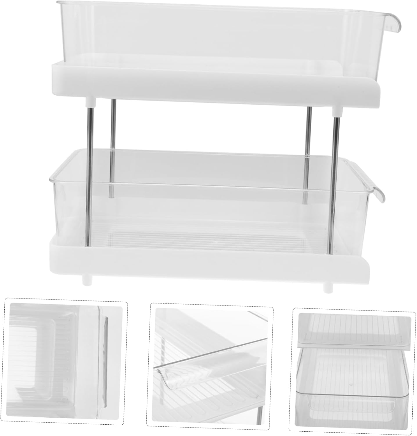 Package List 1 -Tier Bathroom Organizer Characteristics -Size:33.50X22.00X27.00cm/13.17X8.65X10.61in under sink storage for kitchen -Color:Transparent under sink storage -Material:Stainless steel, PET, PP bathroom shelf - Easy to find anything you want. Keep your cosmetics tidy and all the time. Maximizes your storage space! bathroom shelving - With 2-tier design, the storage rack has large capacity, and is space-saving and sink organizer rack for bathroom. - It can be used to store of items, such as facial , shampoo, body wash, etc shelves organizer. - Made of , strong and , it has a . You can use it with confidence bathroom under sink organizer. - You can use this shelf to keep your bathroom and kitchen countertops in order, to make the house tidy under sink storage rack.Goods Informationbathroom storage rack always run in a cluttered bathroom or dresser? This elegant transparent organizer is also perfect for home decor and is a great way to keep cleaning supplies and makeup neat.shelves organizer It allows you to find what you want quickly and keep the counter and organized at all times
