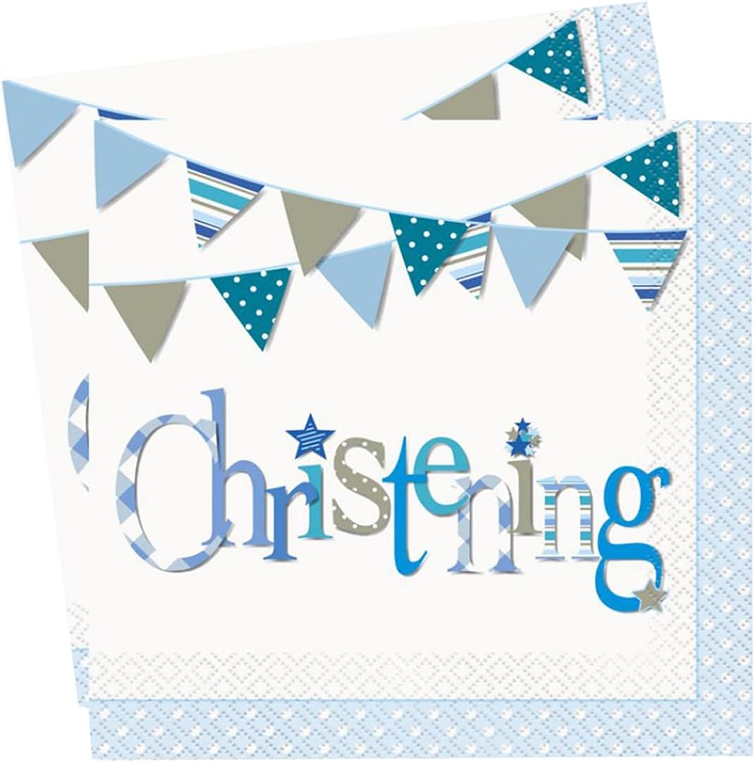 Product Description Toast a boys baptism in charming style with these delightful blue bunting christening cups. Featuring a mixed stars and polka Dot bunting design in shades of blue, these paper cups are ideal for serving warm and cold drinks at any stack them on the drink table for guests to help themselves, or add them to place settings filled with matching Napkins and cutlery for a stylish table setting Set Contains: 1 x Hanging Blue Bunting Christening Decorations, Pack of 3