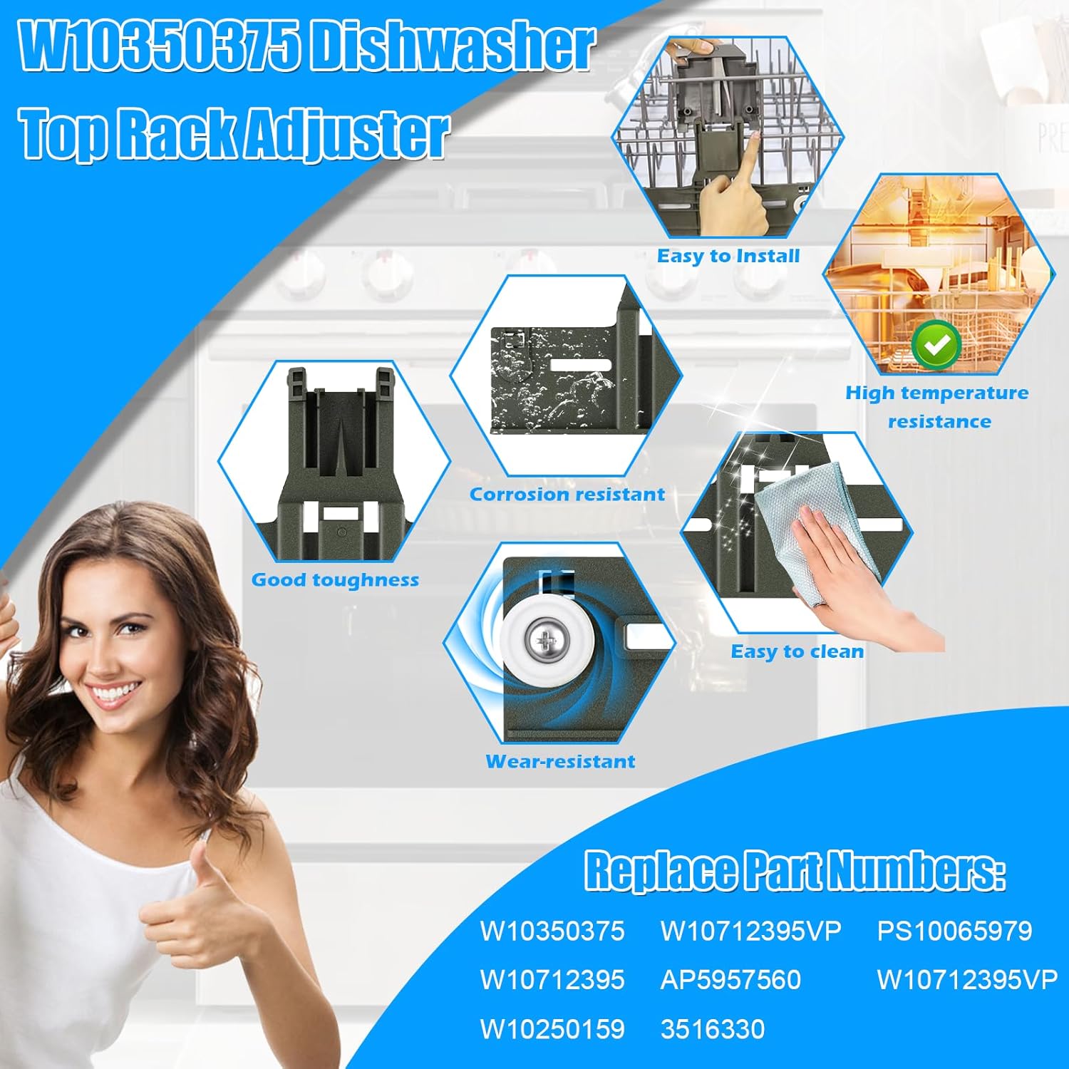 | Model Name | W10350375 Dishwasher Top Rack Adjuster Parts |