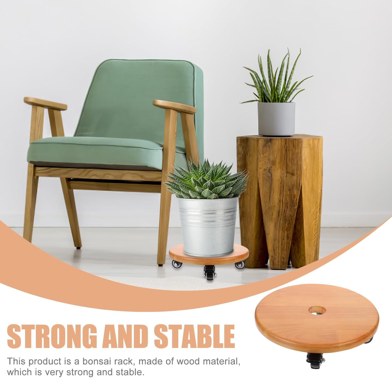 Package List 1 x flower pot Features -Size:28.00X28.00X7.50cm/11.00X11.00X2.95in -Product Info:Movable flower stand -Material: Rubber and wood. -Color:Orange - This rolling plant mover is easy to move on floor, carpets, soil ground and lawn pot holder with wheels. - Round flower pot rack on rollers has plenty of support and protection to keep your plant from tilting and tipping over flower pots with wheels. - The tray is raised to prevent the water from overflow and leak onto the floor supporting planter racks. - Designed for moving flower pot or bonsai, stable enough, increases the mobility of flowerpots, saving your time and effort planter base with wheels. - The wheels will allow you to move the plant, bin, or whatever item on freely without scratching or damaging the floor movable flower planter base.Goods Informationflower pot rack with wheels Manufactured with wood and rubber material, it is durable and for use.planter holder stand This wood plant pot mover provides you the convenience of sunning and shading the plant on the daily basis.movable flower pot tray with wheels Round flower pot rack on rollers has plenty of support and protection to keep your plant from tilting and tipping over