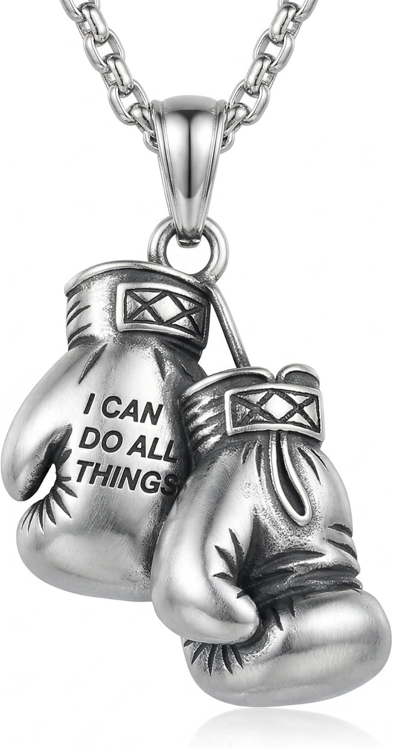 URONE Boxing Glove Necklace 925 Sterling Silver Boxing Pendant Necklace Never Give Up Sport Jewelry Gifts for Women