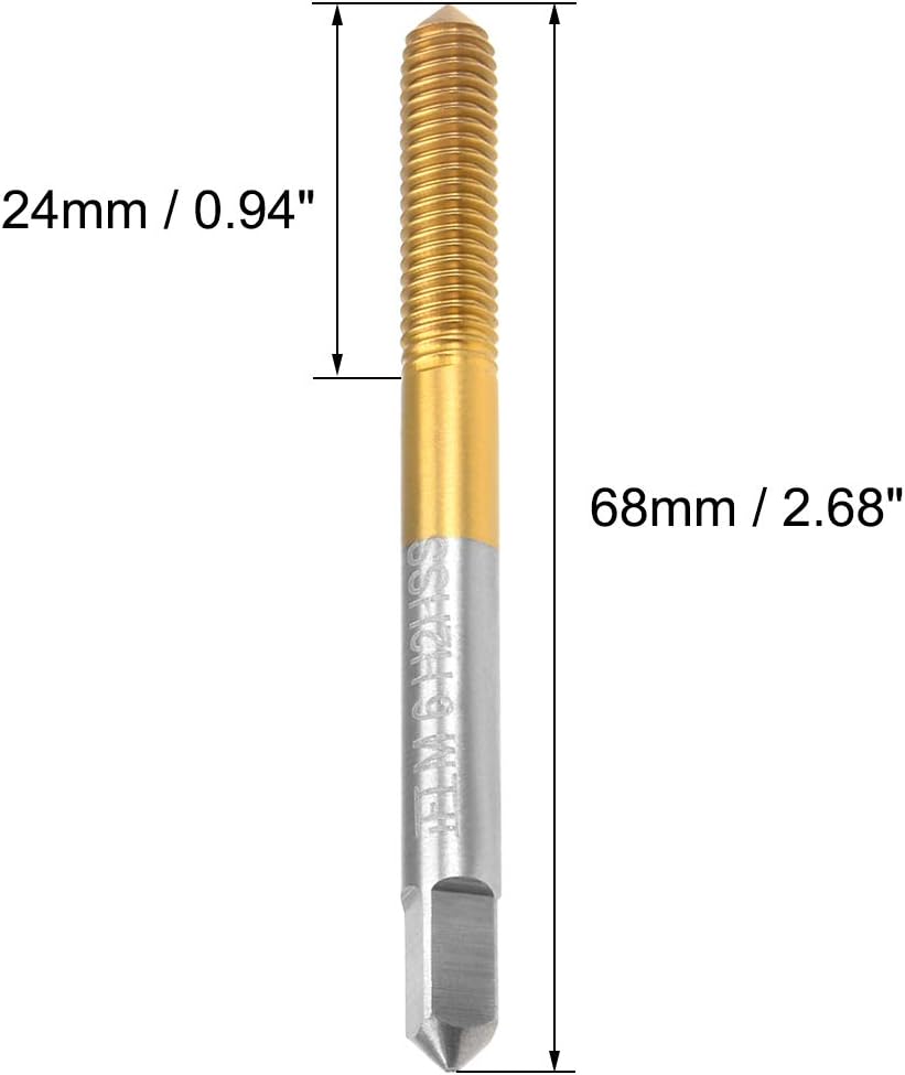 Feature:Used with some cutting fluid or keep it wet when tapping, the tap will last longer.Suitable for drilling, tapping, cutting on soft metal, aluminum plate, iron. Specification:Material: HSS (High Speed Steel) Surface Treatment: Ti CoatedPitch: 1Thread Size: M6Shank Side Width: 4.5mm / 0.18 inchThread Length: 24mm / 0.94 inchTotal Length: 68mm / 2.68 inch Package Content:1 x Thread Forming Tap
