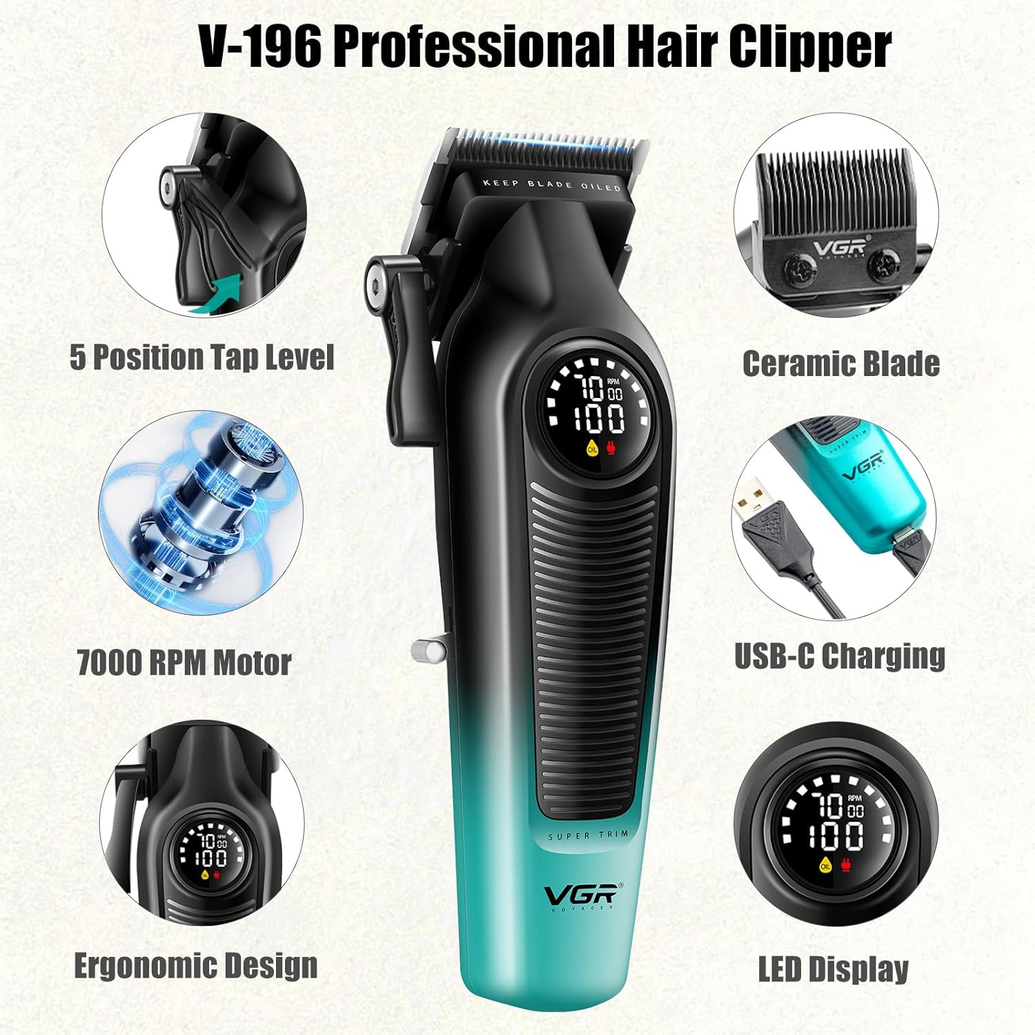 | Included Components | 10 Limited Combs, Cleaning Brush, Hair Clipper&Trimmer, Lubricants Oil, USB Charge Cable |