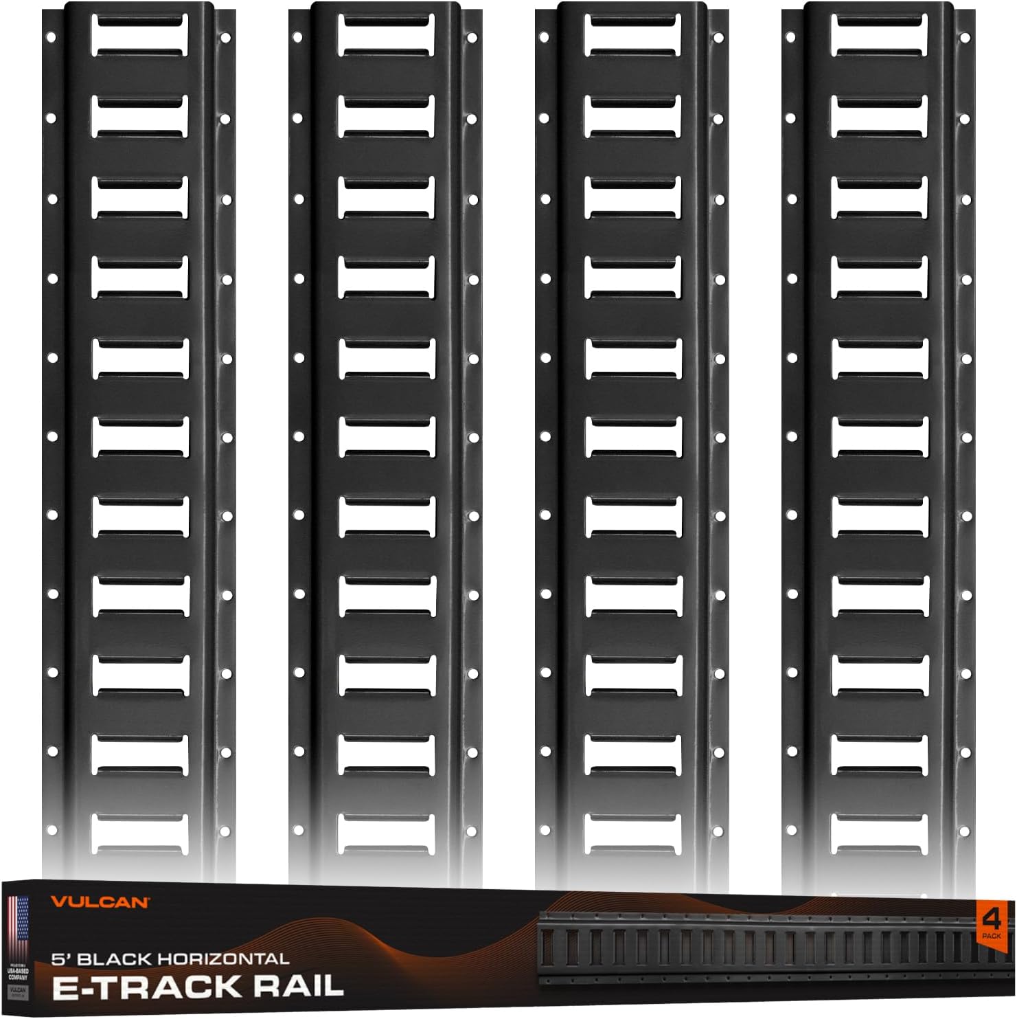| Included Components | VULCAN E-Track - Horizontal Painted Black Section - 4 Foot - 4 Pack |