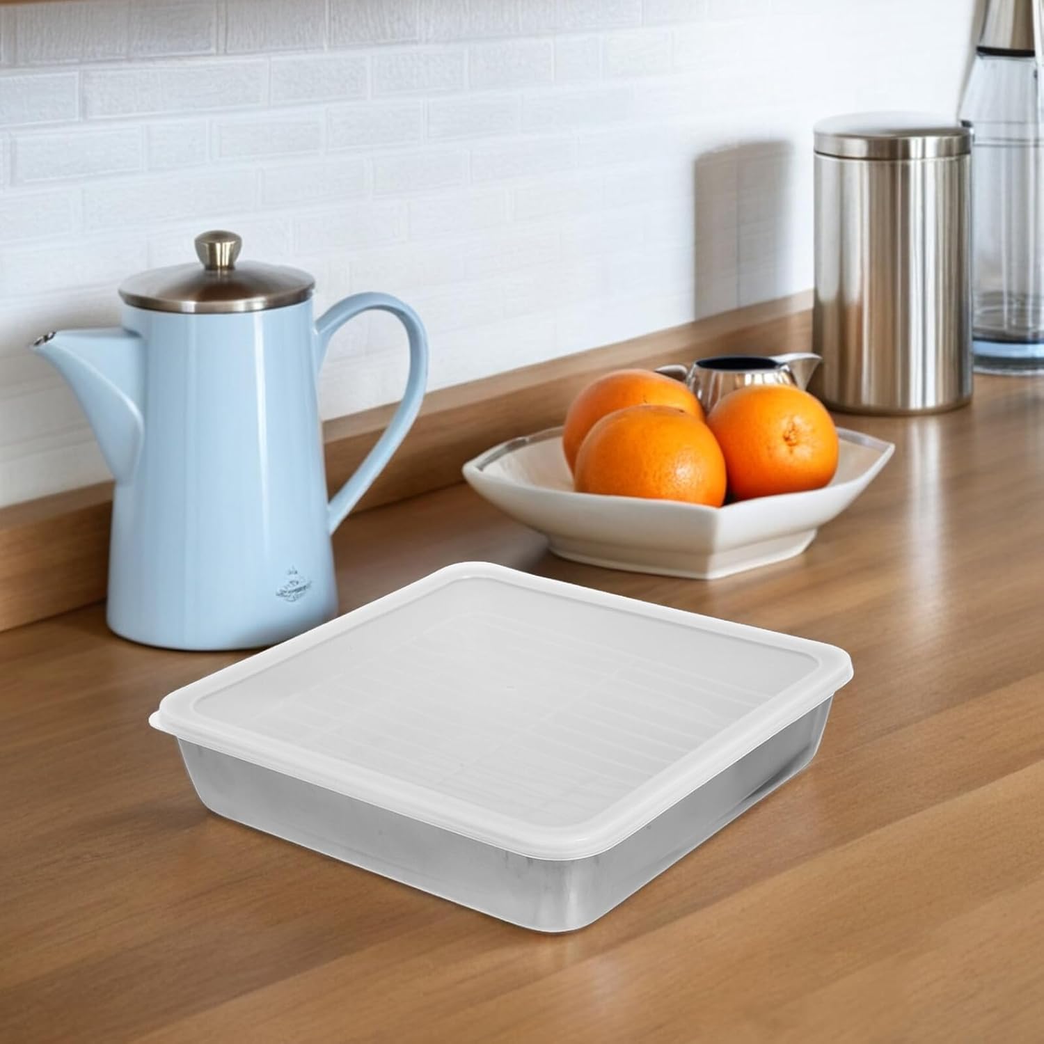 Package List 1 x roasting pan 1 x cooling rack 1 x roasting pan lid Characteristics -Material:Stainless steel, silicone -Maximized cooking space: the rectangular shape is designed to fully utilize oven space, making it easy to cook large items or multiple smaller dishes at once meat roasting pan -All-in-one design: featuring a rack and lid, this versatile pan allows you to steam, roast, and braise with ease, ideal for both indoor and outdoor cooking stackable food storage bin -Ergonomic safety: the carefully crafted edges are smooth to the touch, preventing accidental cuts and ensuring cooking experience grill basket for bbq -Product Info: Stainless steel baking pan set - Color: Multi -Heatresistant stainless steel: this roasting pan is made from sturdy stainless steel that can withstand high temperatures, ensuring your food is cooked evenly and thoroughly grill pan for fish - Size: 24.00X24.00X5.30cm/9.43X9.43X2.08in -Quick cleanup: the nonstick surface that food residue doesn't cling, making cleaning up after meals a breeze and saving you valuable time oven-safe cooking panGoods Informationoutdoor cooking accessories Whether you're preparing a family dinner or hosting a gathering, this versatile roasting pan is a must-have.grill pan for vegetables The spacious interior accommodates large cuts of meat and ample servings of vegetables.vegetable roasting pan The sturdy handles provide a secure grip, making it easy to transfer from the oven to the table.grill basket for outdoor grilling Enjoy wonderfully roasted dishes every time