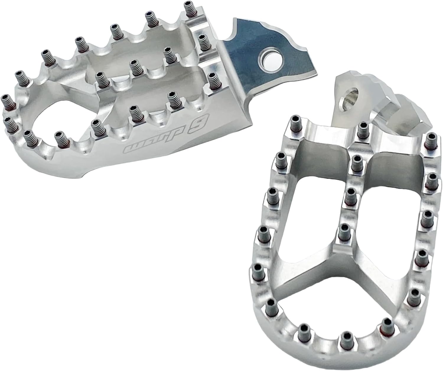 Warp 9 Foot Pegs for Sur-Ron & E-Ride Pro – Premium Forged Aluminum Upgrade These are our #1 must-have upgrade for any E-Moto. If you’ve ever stood on the stock Sur-Ron or E-Ride Pro pegs, you already know — they’re too narrow and offer almost zero grip. Warp 9 fixes all of that. Crafted from lightweight 7075-T6 forged aluminum, these pegs give you a wider, more stable platform with aggressive grip in every riding condition. Whether you’re smashing trails or carving streets, these are the pegs your bike should’ve come with from the factory. 🔧 Key Features: Extra-Wide Platform: 57mm wide x 87mm long for max control and comfort Exclusive “Y” Bridge Design: Adds 4 extra center teeth for unmatched grip Permanent Stainless Steel Teeth: No slipping — ever Super Lightweight: Forged from 7075-T6 aluminum for strength without bulk OEM Fit: Uses the original spring and pin for easy installation Whether you’re hitting jumps, corners, or just commuting — these pegs make your bike feel better immediately. It’s always the first upgrade we do, and once you try them, you’ll know why.