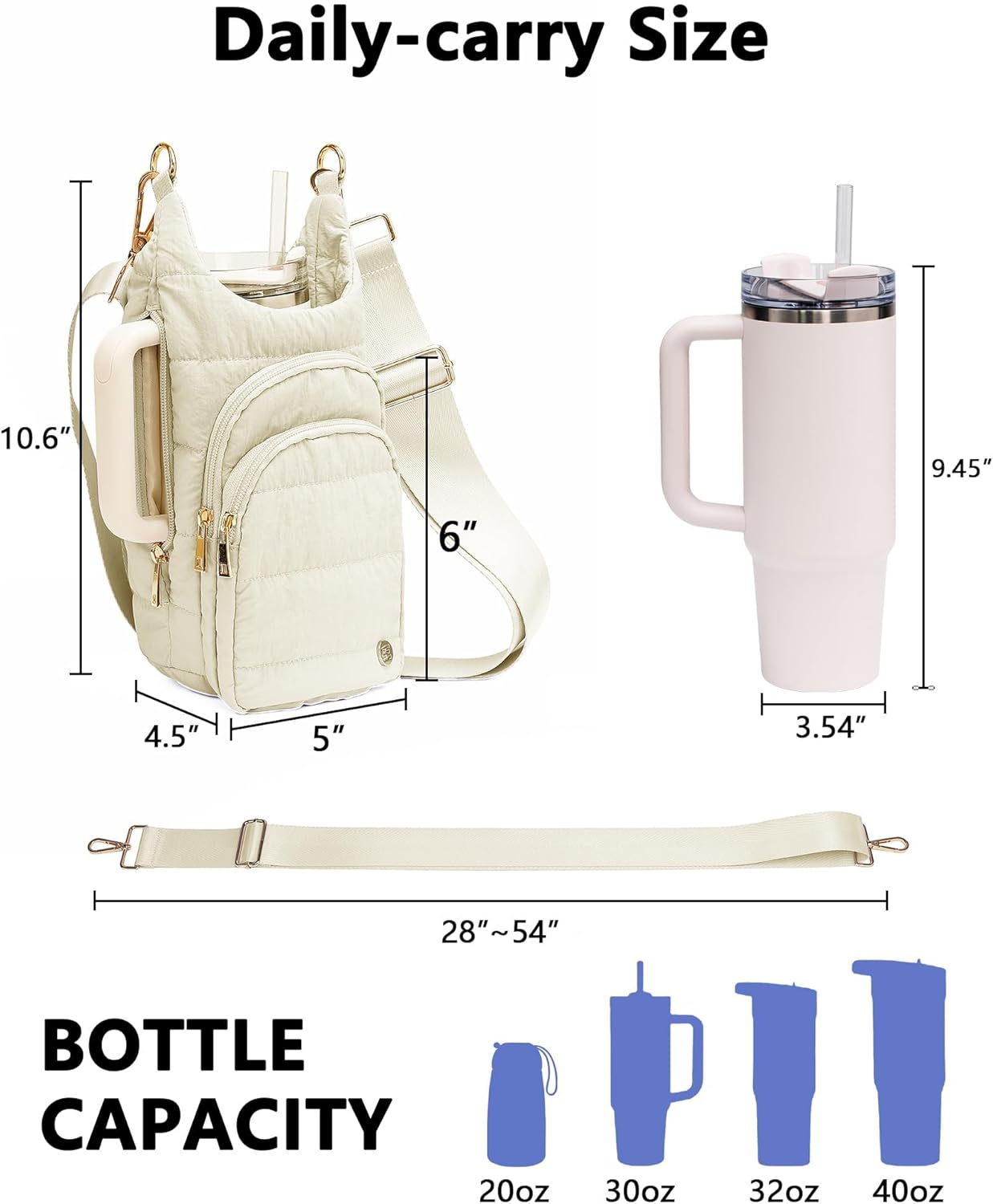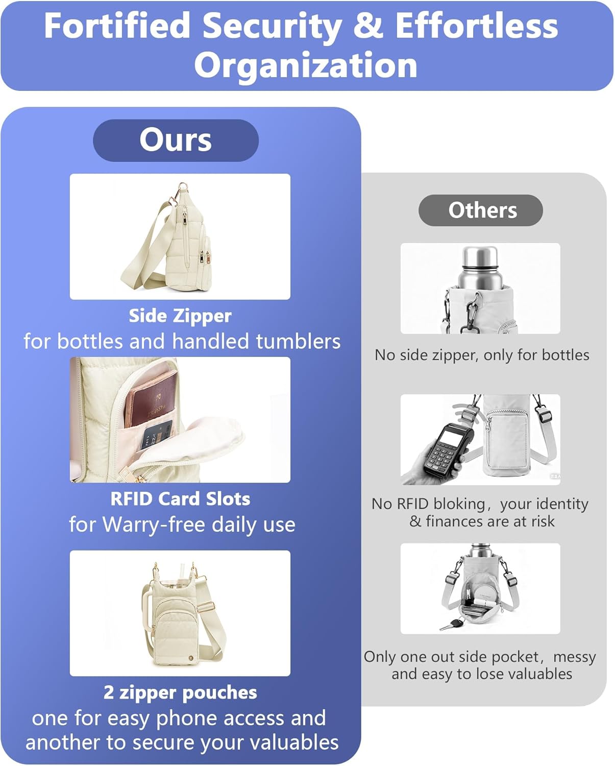 Water Bottle Holder with Strap for 30 OZ Tumbler with RFID Blocking Pocket