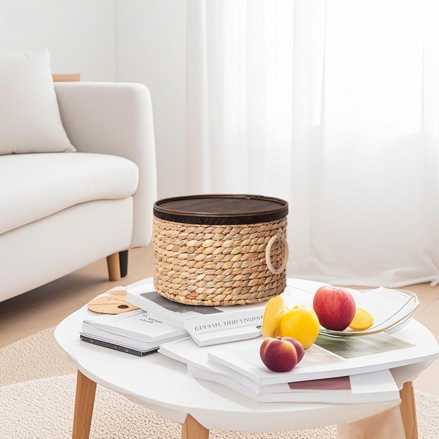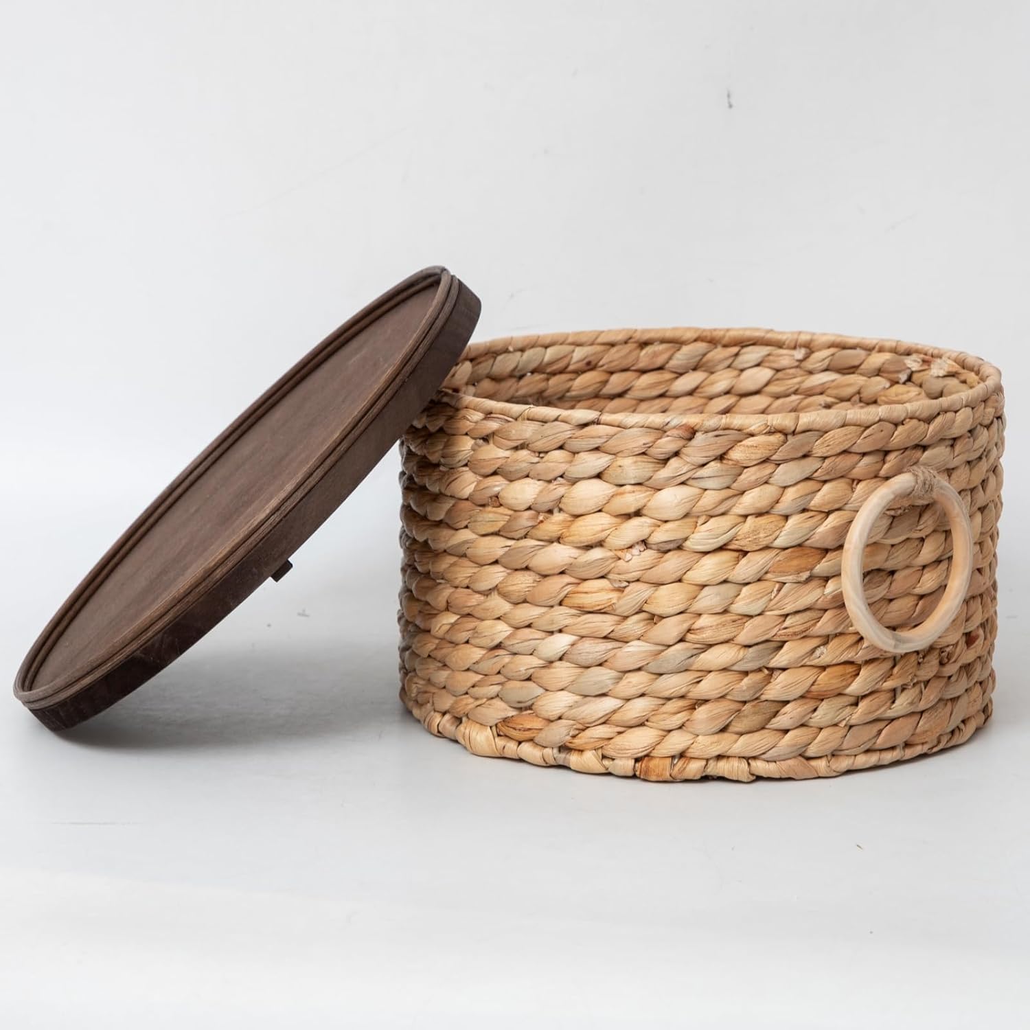 Enhance your home organization with our Water Hyacinth Storage Basket! Handwoven from natural water hyacinth and reinforced with an iron frame, this rustic round basket combines durability with timeless charm. The wooden lid, adorned with two fixed rattan rings, adds a touch of elegance and attention to detail, making it a perfect decorative piece for any room. Multi-Size Options: Available in small, medium, and large sizes to suit your needs. The small basket is perfect for storing daily essentials, while the medium and large baskets are ideal for organizing toys, towels, and more. Use them as shelf baskets or decorative pieces in your bedroom, living room, or kitchen. Thoughtful Design: The large basket features wooden handle rings on both sides for easy carrying, while the medium and small baskets are compact and lightweight, making them versatile for various storage needs. Dimensions: Large: 12.0in (D) x 6.7in (H), Lid 12.2in (D) Medium: 10.2in (D) x 5.1in (H), Lid 10.4in (D) Small: 7.5in (D) x 4.1in (H), Lid 7.7in (D) Why Choose Us? Made from eco-friendly water hyacinth and crafted by skilled artisans, this handmade basket is a sustainable and stylish addition to your home.