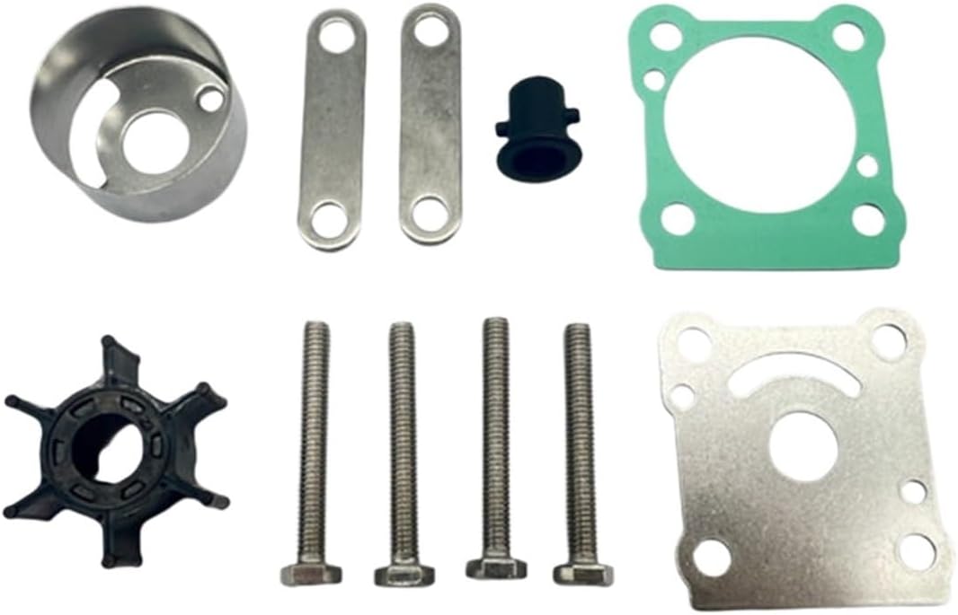 OEM:6G1-W0078-00 6G1-W0078-01 6G1-W0078-A1 6N0-W0078-A018-3460FOR:6HP 2 Stroke Outboards:1986-2000 Year 6hp8HP 2 Stroke Outboards:1984-2009 Year 8hpPackage Contains the Following Components:1 x Water Pump Gasket (6G1-44315-A0)1 x Cartridge Insert (6G1-44322-00)1 x Cartridge Outer Plate (6G1-44323-00)1 x Impeller (6G1-44352-00)1 x Water Seal (647-44366-00)2 x Plate (6G1-44328-00)4 x Hexagon Bolts Pump Housing (97080-06045)