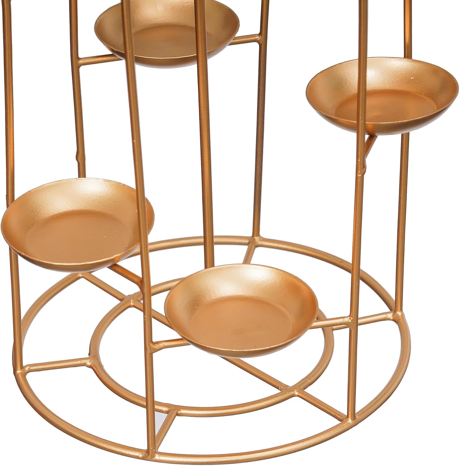 Webelkart Elevate your Diwali celebrations with this exquisite 7-tier diya stand candle holder. Standing at an impressive 38 centimetres (15 inches) in height, this meticulously crafted piece features a stunning golden finish that adds a touch of luxury to your festive décor. The elegant design comprises seven beautifully arranged urli bowls, perfectly positioned to create a cascading effect of light when illuminated. The sturdy metal construction ensures durability, while the thoughtfully designed base provides stable support for all your diyas or candles. This versatile decorative piece can serve as a stunning centrepiece for your home during festivals or special occasions. The traditional yet contemporary design makes it a perfect addition to both modern and classical interior settings. Each tier is carefully positioned to maximize the visual impact of the illuminated diyas, creating a mesmerising display of light and shadows. Whether placed in your living room, entrance, or puja room, this diya stand is sure to become the focal point of your festive decorations.