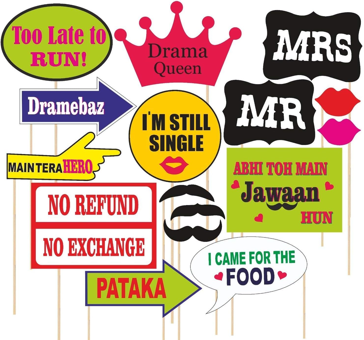 PERFECT WAY TO ADD FUN - Photo Props are a unique party decoration that can add sparkle to any bash, from BIRTHDAY PARTY TO WEDDING OR BACHELORE OR ANY OTHER PARTY.SUPER FUN:Make fun during taking photograph and freeze significant memories for ever. ORDER NOW! and make your PARTY/event Rock !