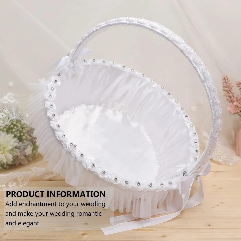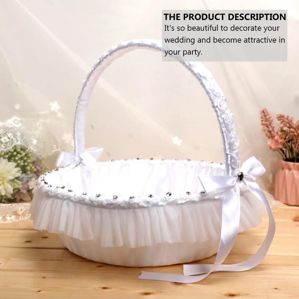 It was designed for wedding, banquet and other special events. Portable basket is lightweight and easy to carry.Western-style wedding basket, , reusable, can send wedding petal ornaments.Great gift and keepsake items, suitable for banquet, party and other special events.Add enchantment to your wedding and make your wedding romantic and elegant.Its so beautiful to decorate your wedding and become attractive in your party.FeaturesColor: As shown.Material: Rhinestone, polyester, lace.Size: About 35x35x30cm/ 13.76x13.76x11.79 inch.1 x flower basket (Others Not Included)Notes:Due to the light and screen setting difference, the item's color may be slightly different from the pictures.Please allow slight dimension difference due to different manual measurement.