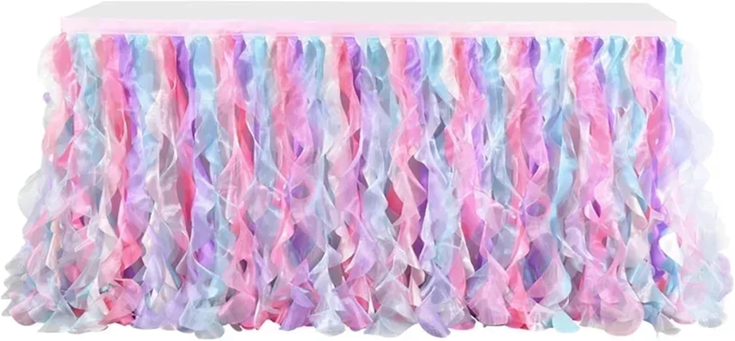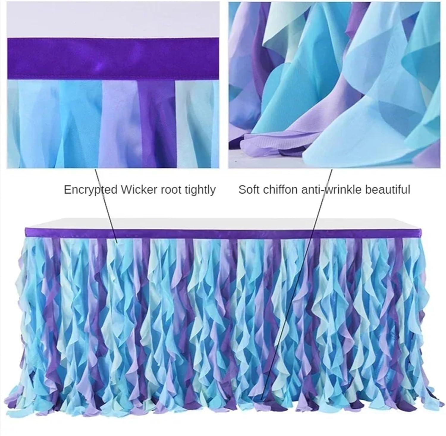 Material: Our party table skirts are crafted from unique materials that add a touch of elegance to any event. The eye-catching shine enhances the overall ambiance, making your table stand out and creating a festive atmosphereFashions Design: The unique table skirt design features beautiful design that provide a playful and lively look. This stylish addition can complement various party themes, adding a fun twist to your table setupExquisite Decoration: Transform your table with our table skirt for party, which offers an exquisite decorative touch. Perfect for enhancing the visual appeal of your dining area, it ensures your table looks stunning for any gathering or celebrationEasy to Use: The Banquet Table Skirt can be quickly assembled in just a few minutes. Its user-friendly design allows you to set it up effortlessly, giving you more time to enjoy the festivities without worrying about complicated installationsVersatile Occasions: These party table skirts are ideal for various occasions, including birthday parties, festive celebrations, and any other gathering that calls for an elegant and vibrant table decoration. Their versatility makes them a must-have for your event planning needs