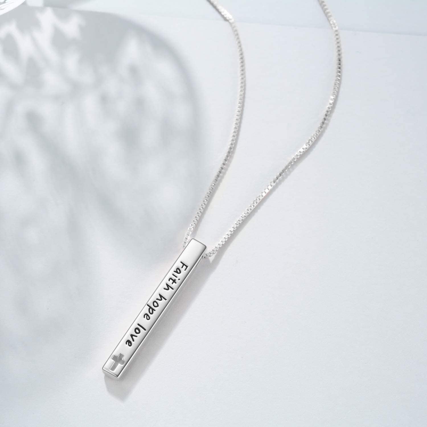 WINNICACA Opal Necklace for Women 925 Sterling Silver Vertical Bar Pendant Necklaces Blue White Opal Faith Inspirational Jewelry for Women Mom Her Wife Lady Anniversary Mothers Day Birthday GiftWINNICACA Brand: WINNICACA Jewelry have a good command of both "fashion" and "unique" in various occasion. We create elegant jewelry out of silver, gold, alloy, stone, unique symbol, beautiful words and good taste with creative flare. Designer Words Inspirational Christian Quotes Necklace: Faith makes all thing possible, Hope makes all things work, Love makes all things beautiful.lifeline engraved pendant❤In the Middle Ages, Opal was considered a stone that could provide great luck because it was believed to possess all the virtues of each gemstone whose color was represented in the color spectrum of the opalProduct Material: 925 Sterling Silver sparkling diamond-cut crystalPlated Platinum Package Includes: 1x White Opal Bar Necklace1 x Gift Box Maintenance and Repair: 1. Not close to chemicals 2. Don't touch the water 3. Try to avoid hitting 4. Cannot use exercising 5. Please clean with cotton cloth Please Note: 1. There might be 2-3% difference according to manual measurement. 2. The pictures are from actual product, there might be differences of color and texture due to different display monitors