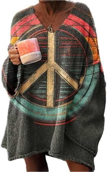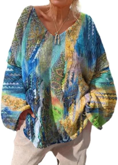 Discover a collection of women’s bohemian-style V-neck sweaters designed for comfort, color, and creativity. Each piece features an oversized fit with balloon sleeves, combining effortless style with a cozy, relaxed feel. The designs range from floral and paisley prints to mandala, patchwork, tie-dye, and retro symbols—each reflecting a unique artistic personality. Crafted from soft, breathable knit fabric, these sweaters are perfect for layering during spring, fall, and winter. The V-neckline adds a flattering silhouette, while the bold prints and vibrant hues bring a sense of individuality and charm to any outfit. Whether paired with jeans, skirts, or leggings, they create a casual yet expressive look suitable for both everyday wear and festive occasions. A must-have for those who love bohemian fashion, these sweaters blend comfort, creativity, and versatility—making them ideal for expressing your free-spirited style all year round.