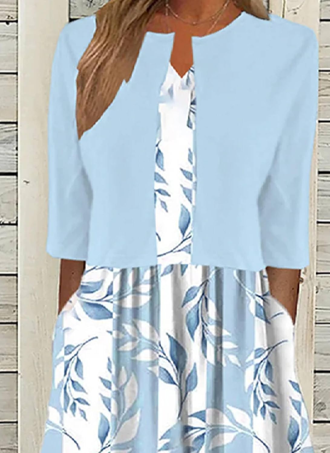 This women's two-piece outfit includes a charming floral sleeveless midi dress paired with a matching half sleeve open front jacket, creating a complete and stylish summer look. The dress features a flattering v-neckline, a slim fit bodice that accentuates the waist, and a flowy a-line skirt that falls to a graceful midi length. The floral print adds a touch of femininity and seasonal charm, perfect for warm-weather occasions. The coordinating solid color jacket offers lightweight coverage with its open front design and elbow-length sleeves, balancing both comfort and elegance. This versatile set is ideal for casual outings, vacations, brunches, or garden parties, and the pieces can also be worn separately for multiple styling options. The soft and breathable fabric ensures you stay comfortable all day, while the effortlessly chic design makes it easy to transition from daytime activities to evening gatherings. A great addition to any summer wardrobe, combining practicality with timeless beauty.