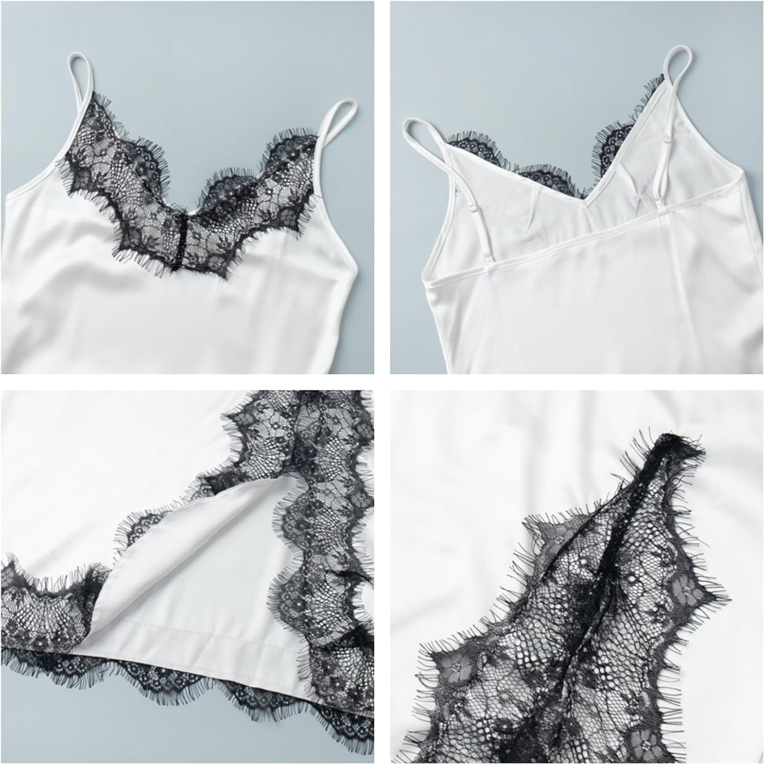 Product Name: Women's Spaghetti Strap Lace Long Side Slit NightgownProduct Information:Material: PolyesterStyle: SuspenderNeck: V-neckSleeves: SleevelessLength: MaxiFashionable Elements: Side SlitsColors: White, Black, PinkSizes: S, M, LPackaging: 1 Women's NightgownNotes:1. Due to screen color variations, actual images may differ slightly from the actual product. Please refer to the actual product for details.2. If you have any questions after receiving our product, please contact us via email and we will promptly address them.